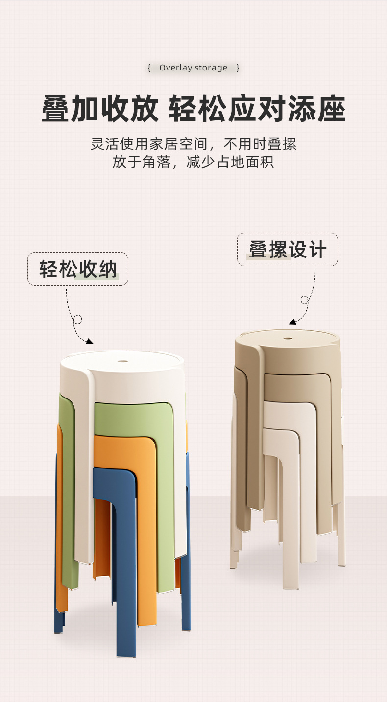 家用凳子加厚塑料可叠放旋风餐桌板凳风车凳高圆凳胶凳子简约椅子