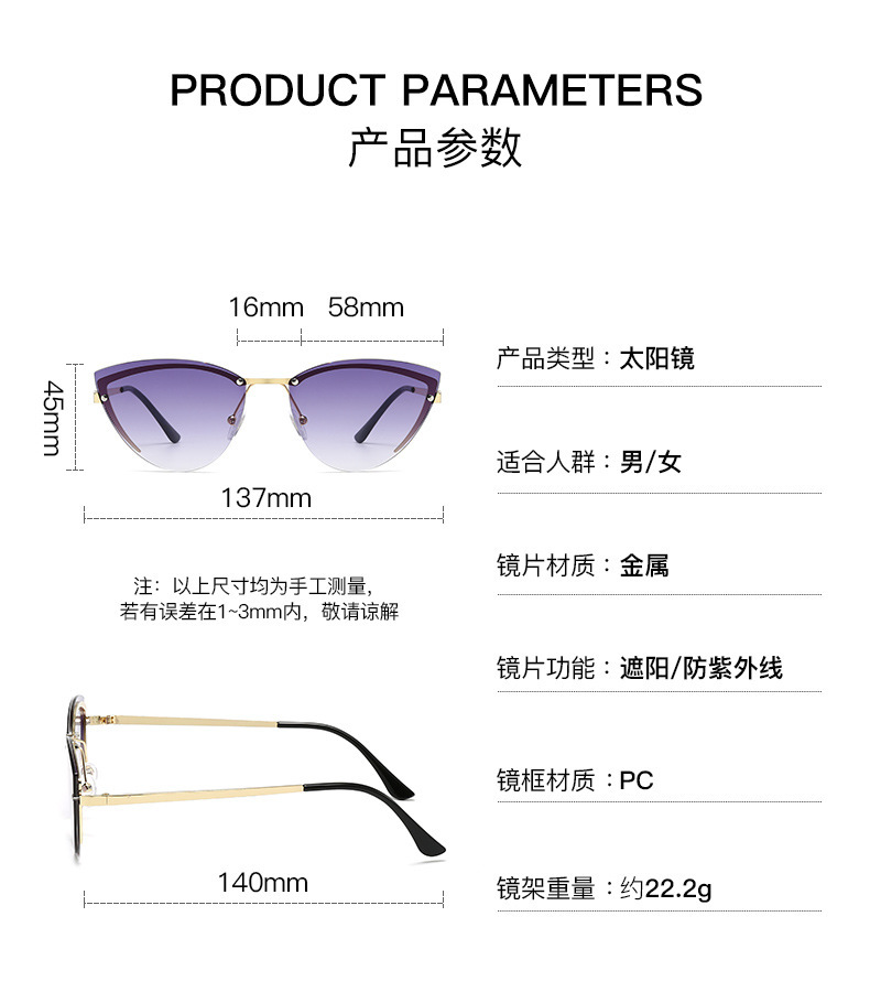 2025 프레임리스 메탈 고양이의 눈 선글라스 유럽과 미국의 스파이스 걸스 선글라스 맞춤형 트렌디 한 하트 모양의 선글라스스토어 가기