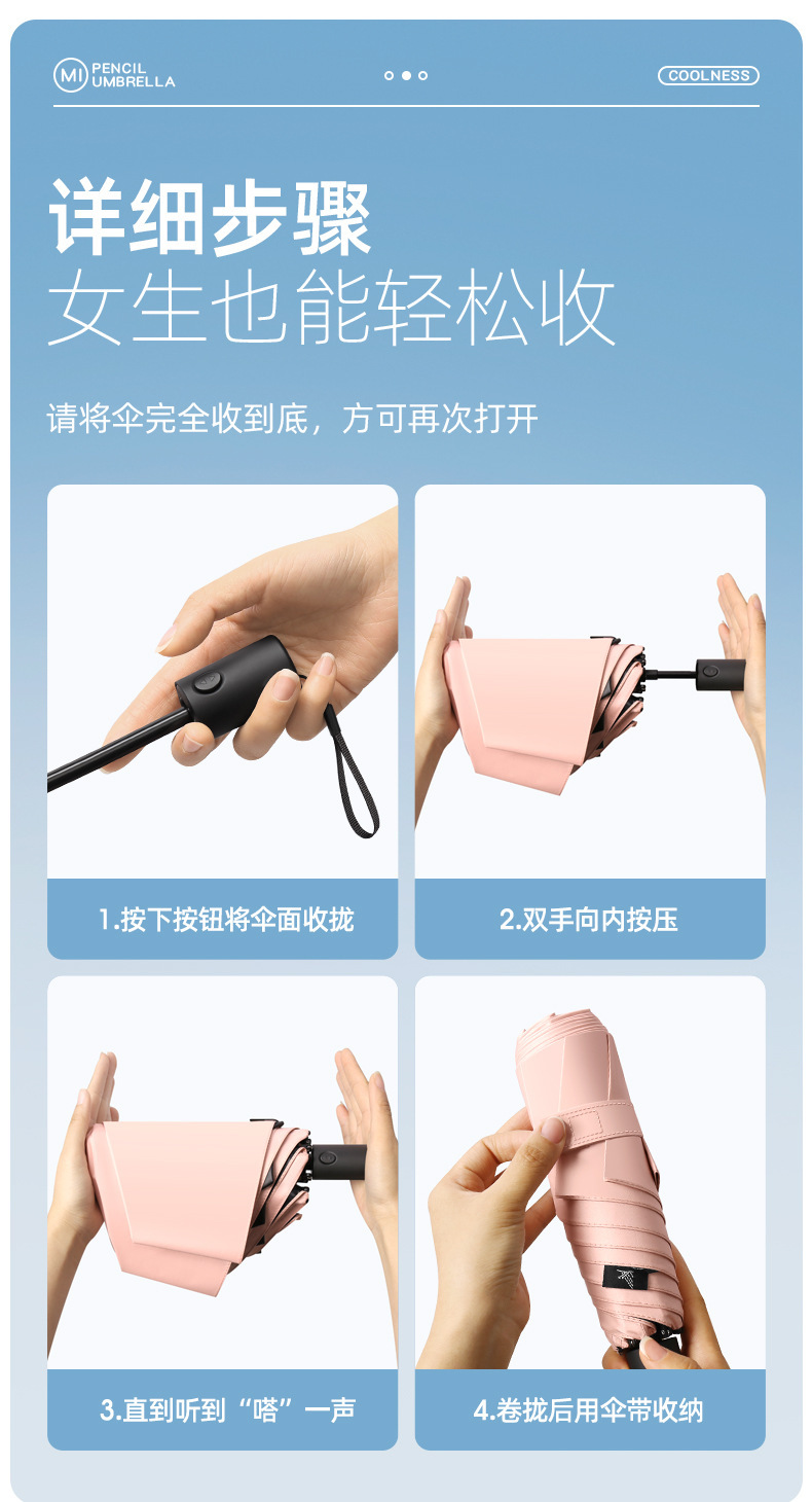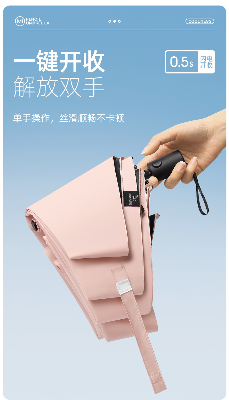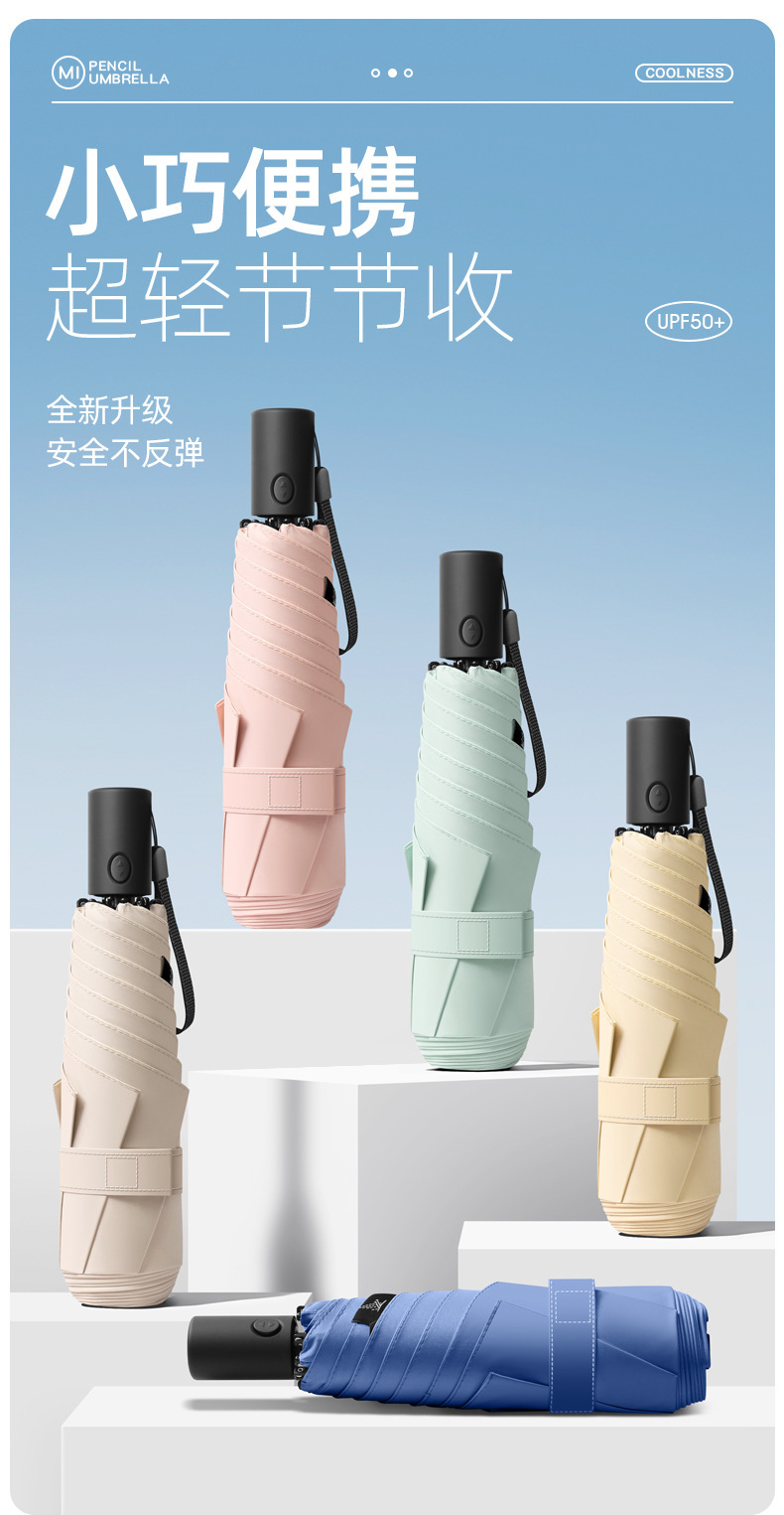 230g 초경량 및 에너지 절약 휴대용 납땜 완전 자동 태양 우산 자외선 방지 및 방비 이중 목적 6 본 연필 우산스토어 가기