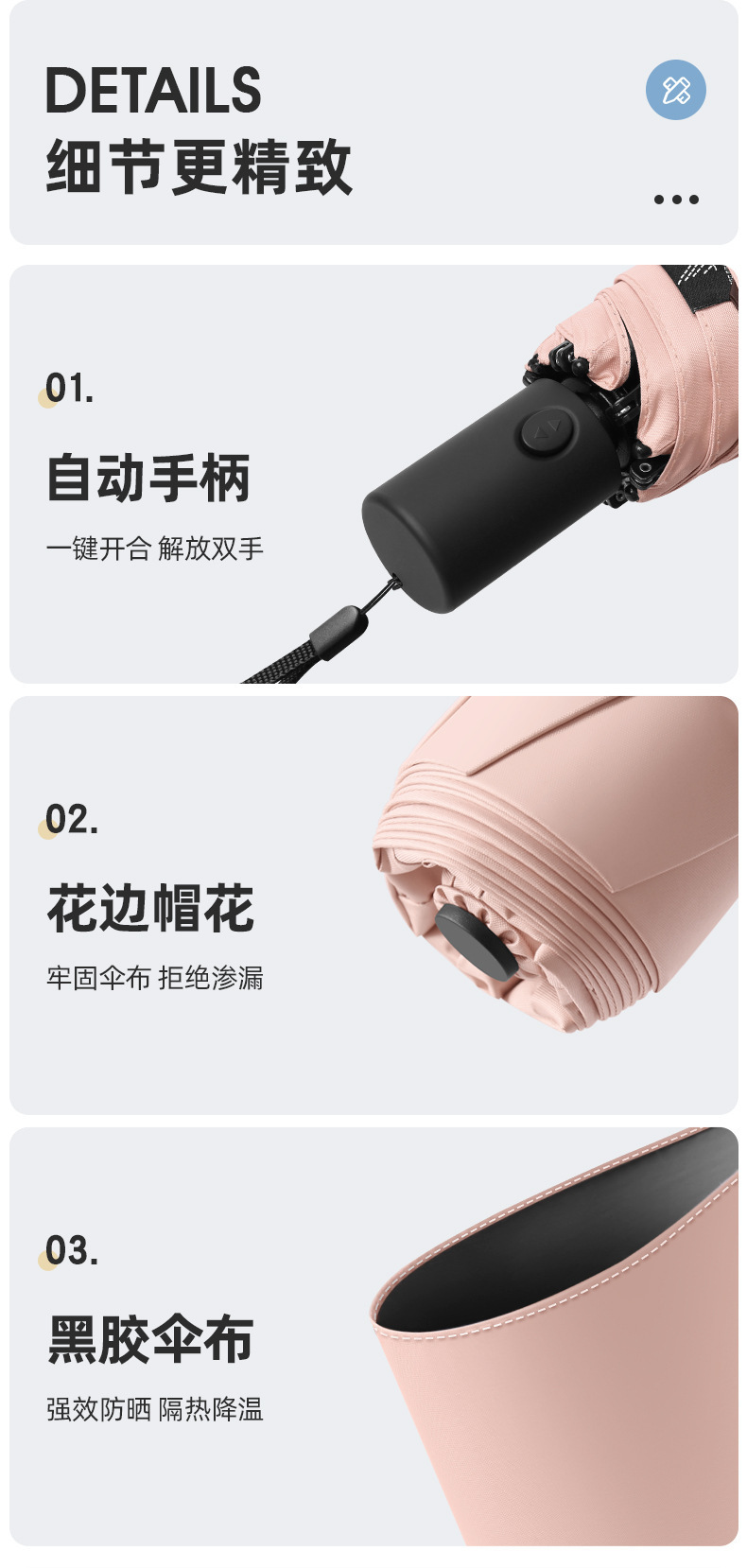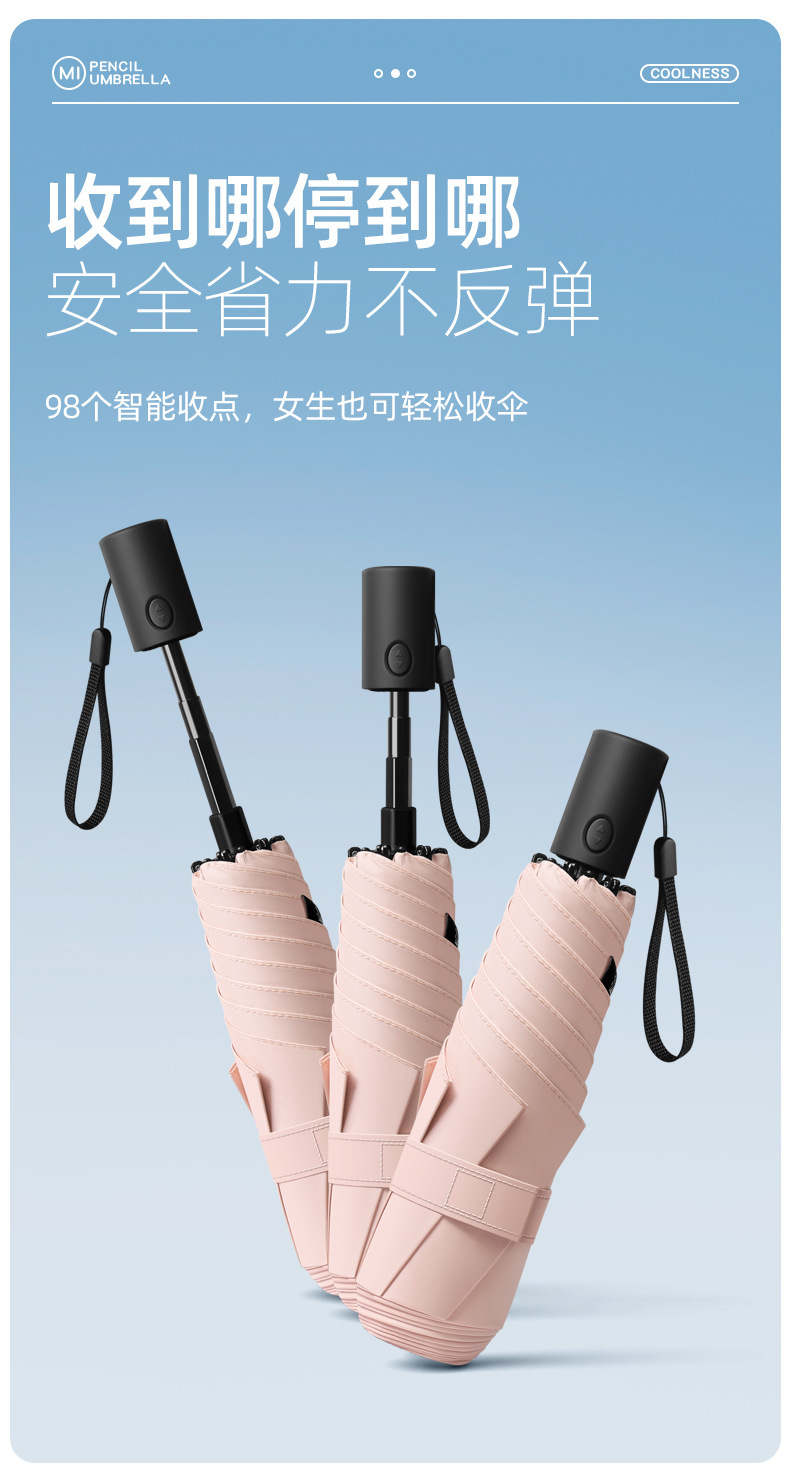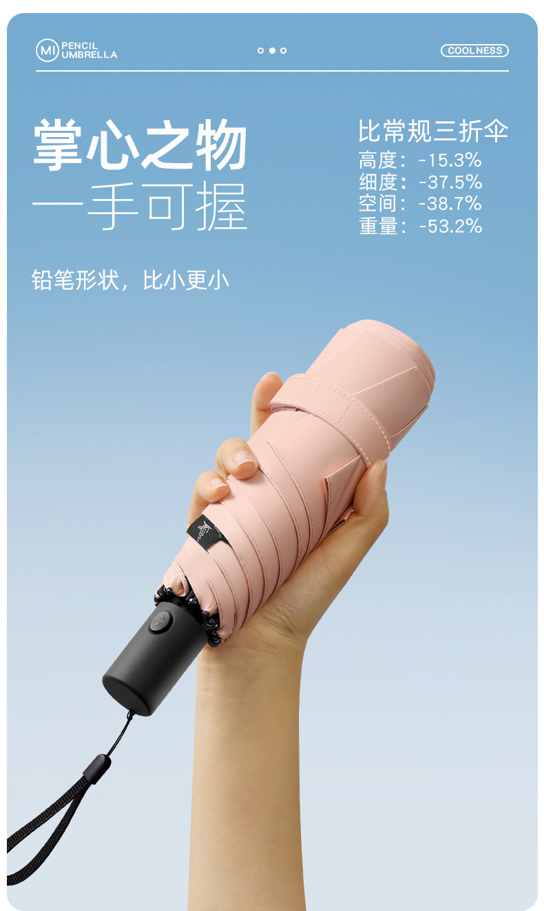 230g 초경량 및 에너지 절약 휴대용 납땜 완전 자동 태양 우산 자외선 방지 및 방비 이중 목적 6 본 연필 우산스토어 가기