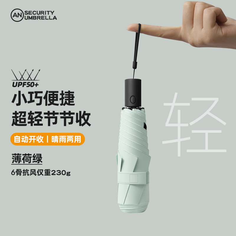 230g 초경량 및 에너지 절약 휴대용 납땜 완전 자동 태양 우산 자외선 방지 및 방비 이중 목적 6 본 연필 우산