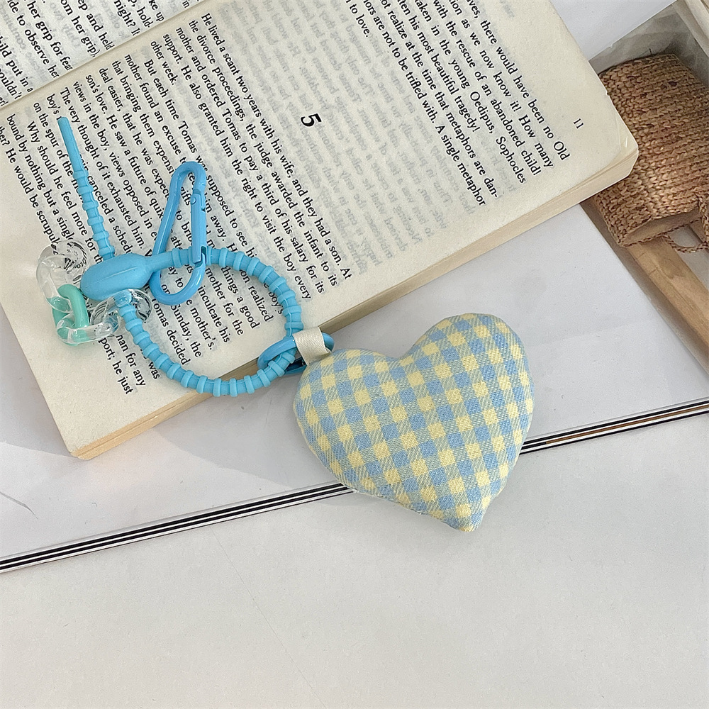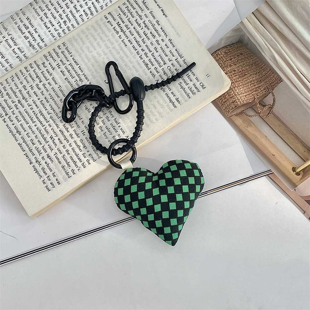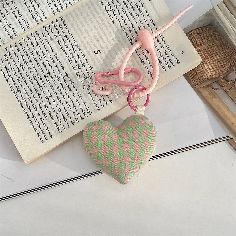 R5232 귀여운 직물 펜던트 여성 원료 분말 격자 무늬 사랑 액세서리 교수형 가방 펜던트 선물 키 체인 학생스토어 가기
