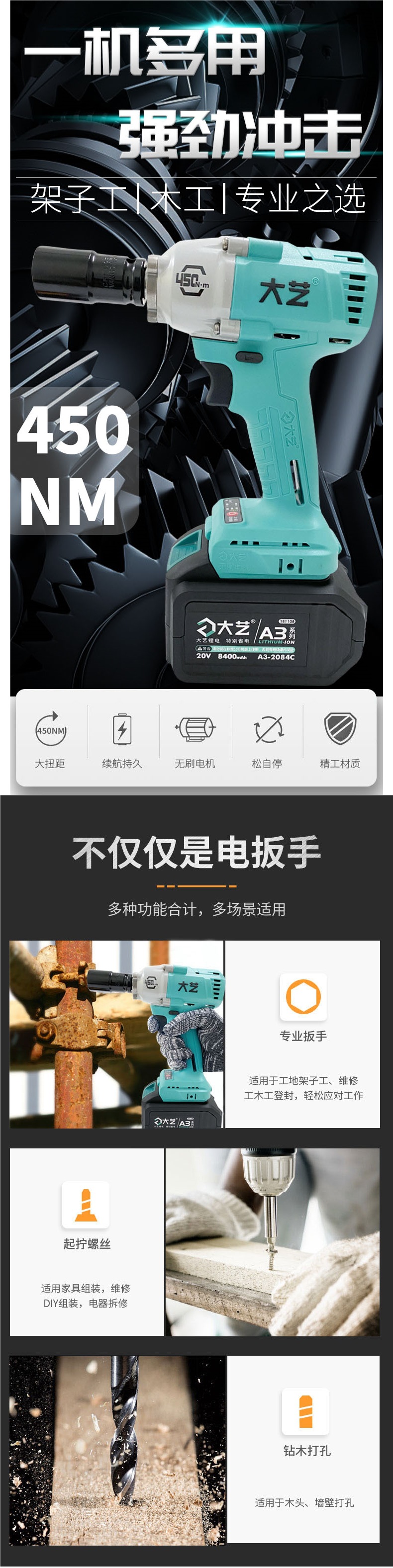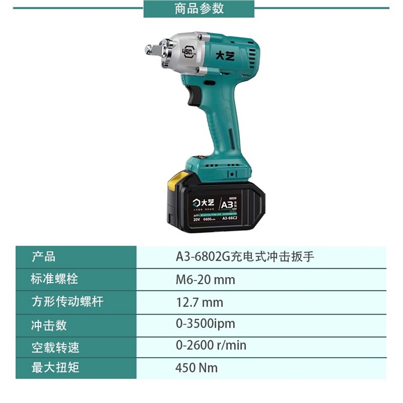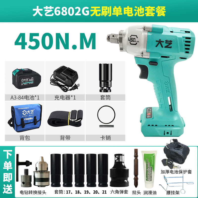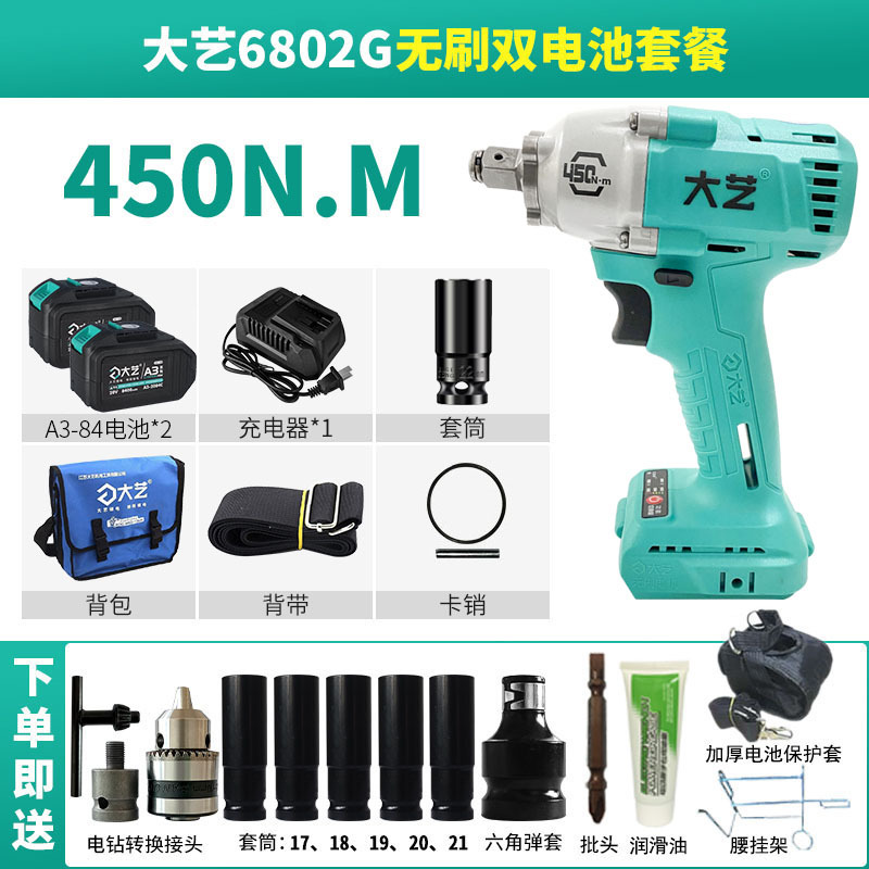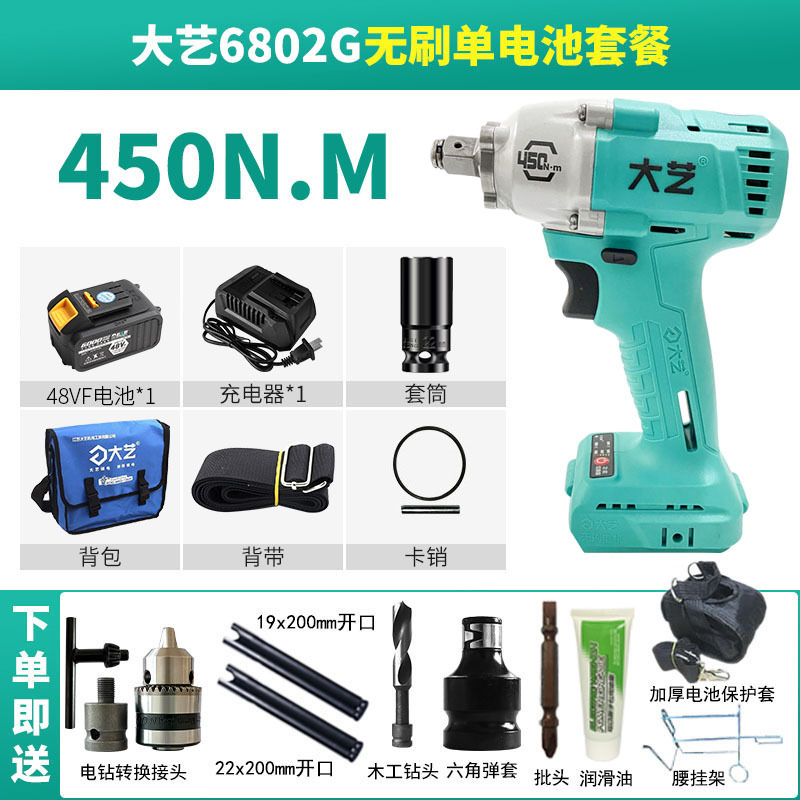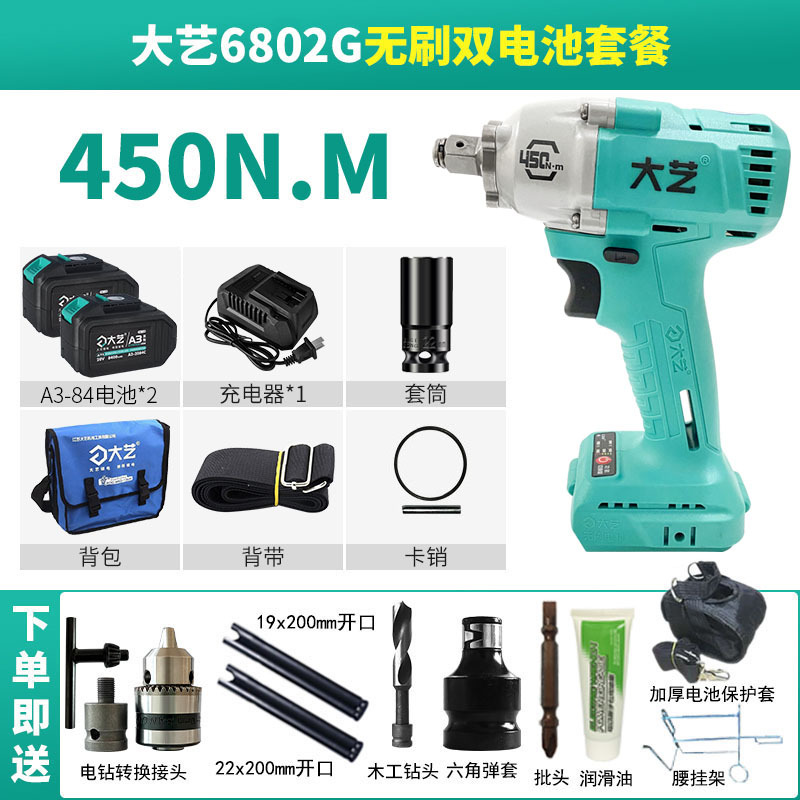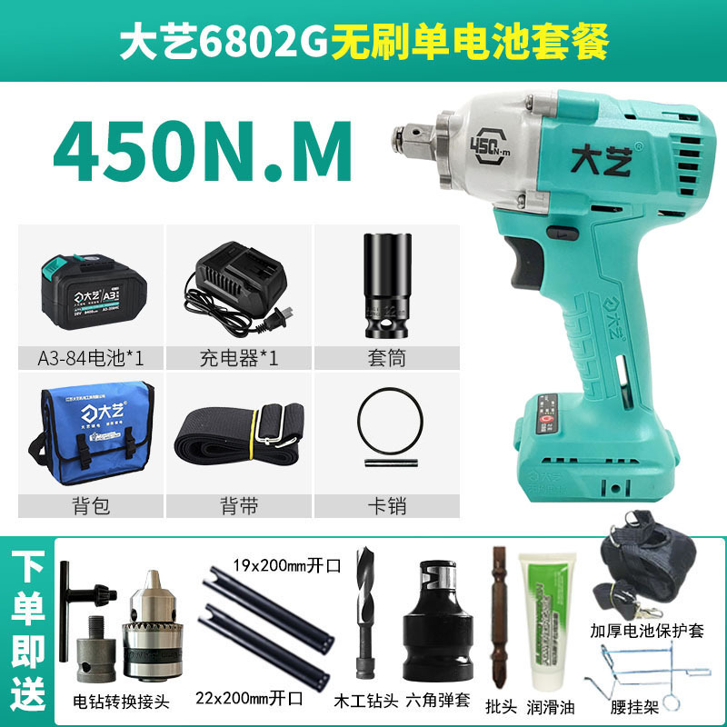 Dayi 전기 렌치 정품 A3 대형 토크 450N 브러시리스 리튬 배터리 대피소 목공 트랙터 특수 렌치