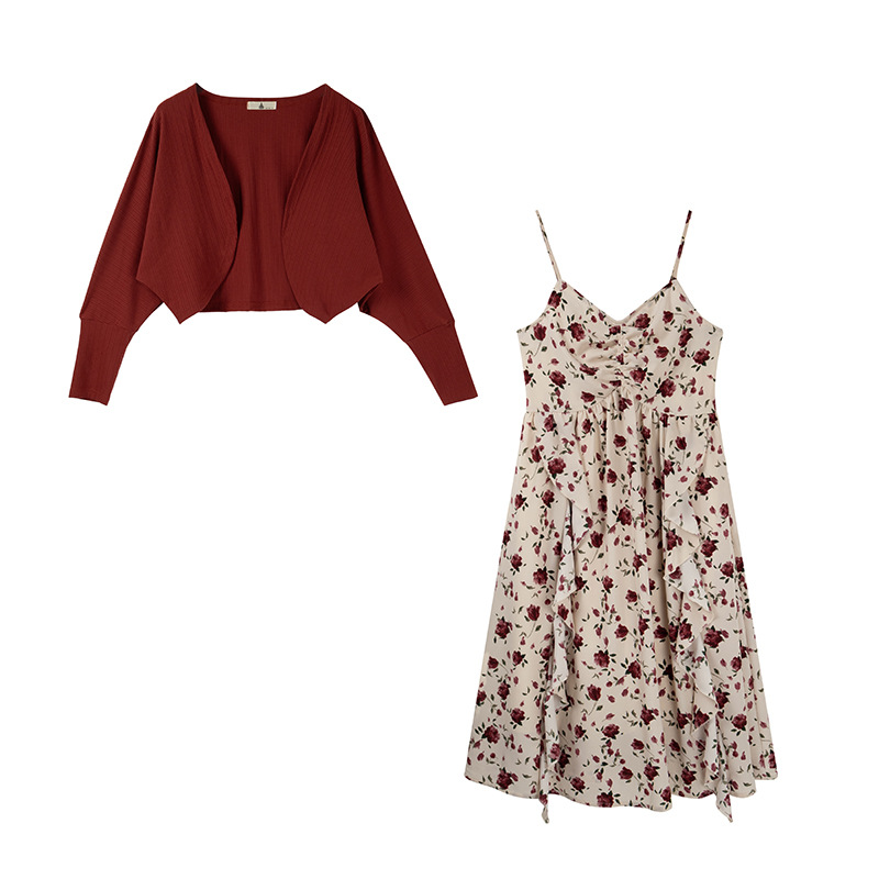 这套开衫碎花连衣裙套装妥妥“白月光”啊