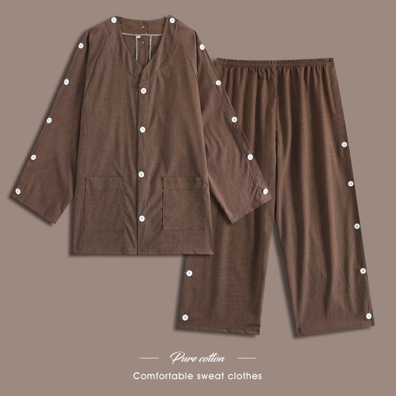남성용 커플용 스웨트셔츠 뜸옷 앞뒤 오픈 버클 코튼 사우나 목욕 의류 숄더 오픈 슬리브 오픈 버클 침술 물리 치료스토어 가기