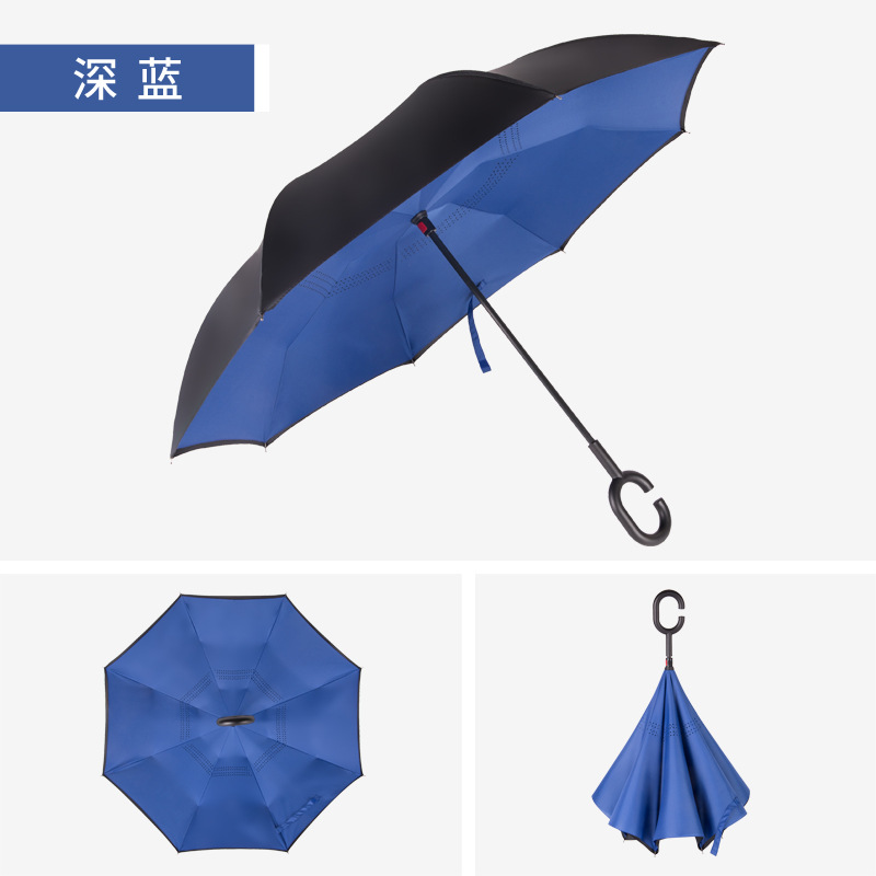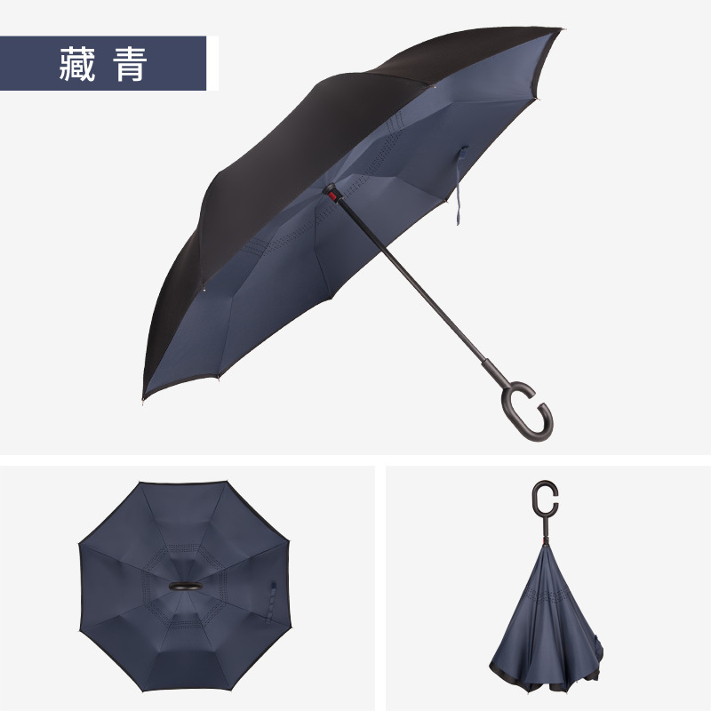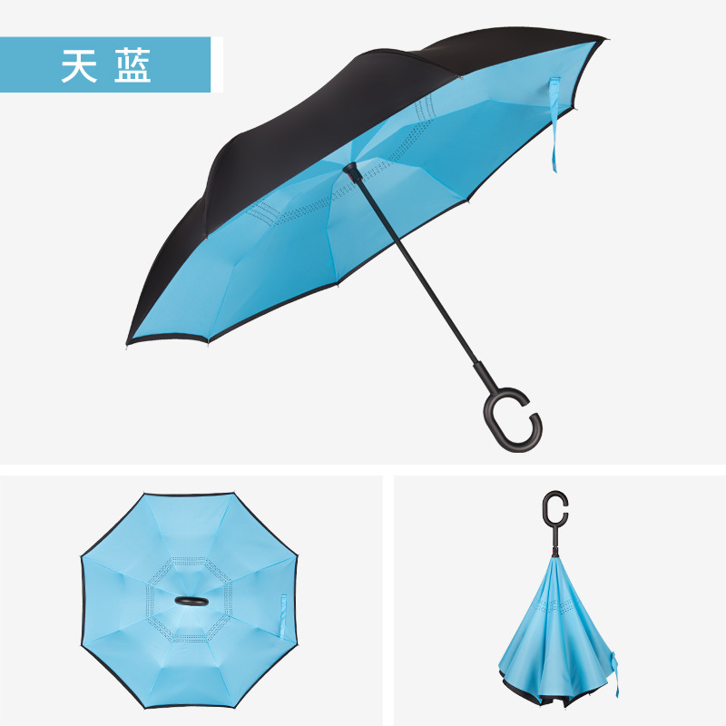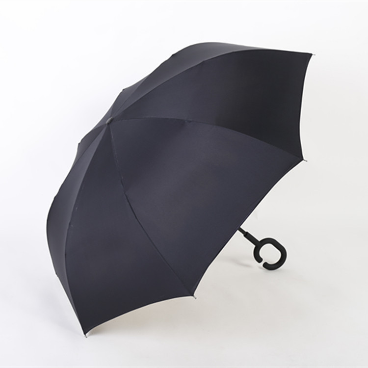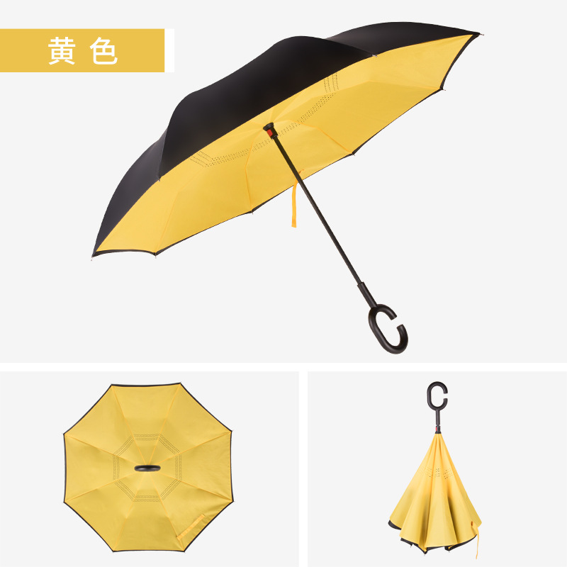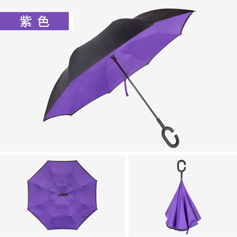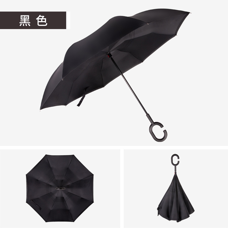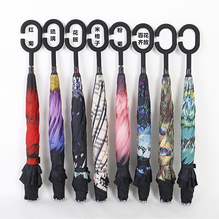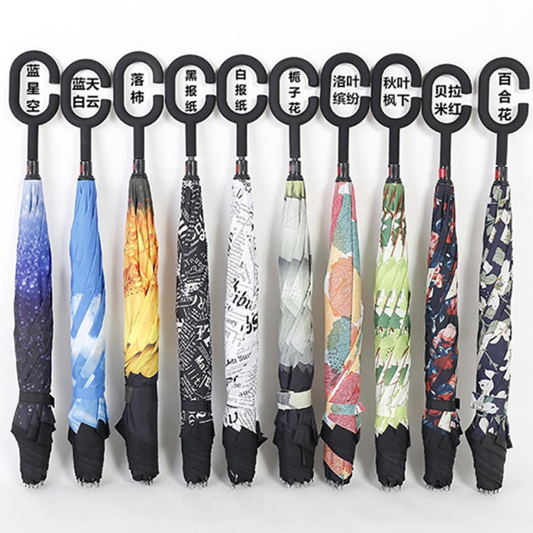 도매 창조적 인 스트레이트 폴 긴 핸들 C 형 핸즈프리 리버스 우산 생산 더블 레이어 서 우산 로고 광고 우산스토어 가기