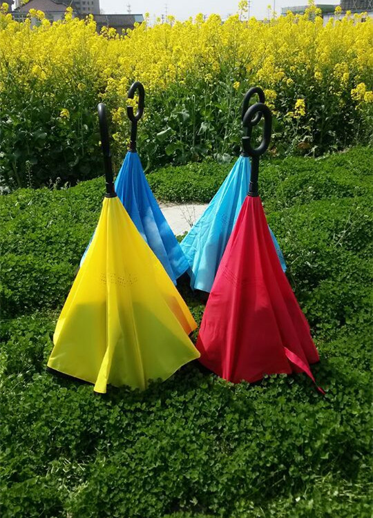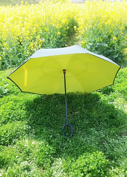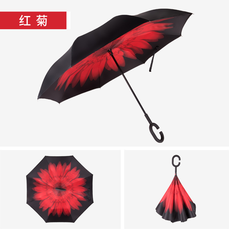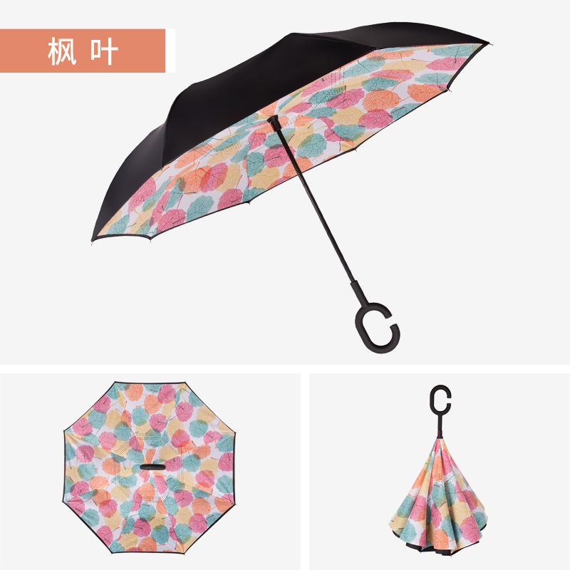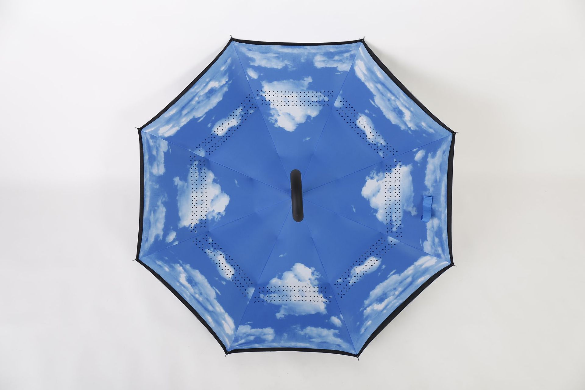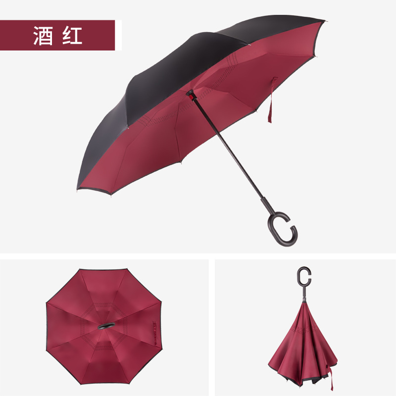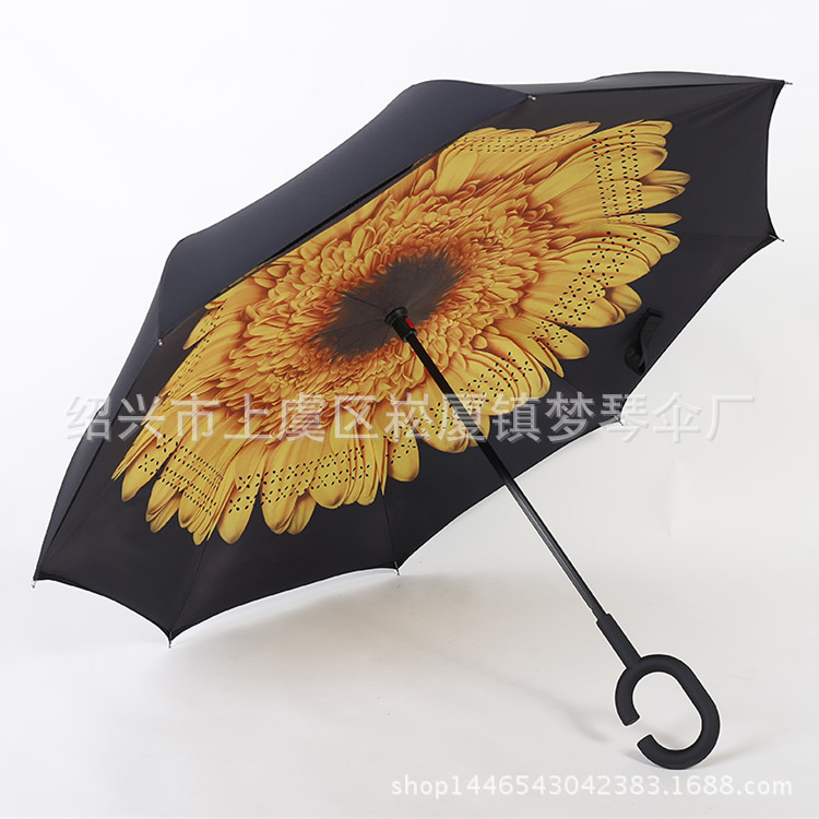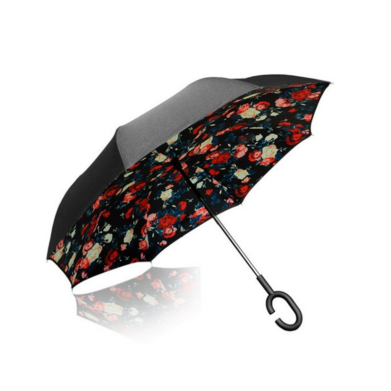 도매 창조적 인 스트레이트 폴 긴 핸들 C 형 핸즈프리 리버스 우산 생산 더블 레이어 서 우산 로고 광고 우산스토어 가기