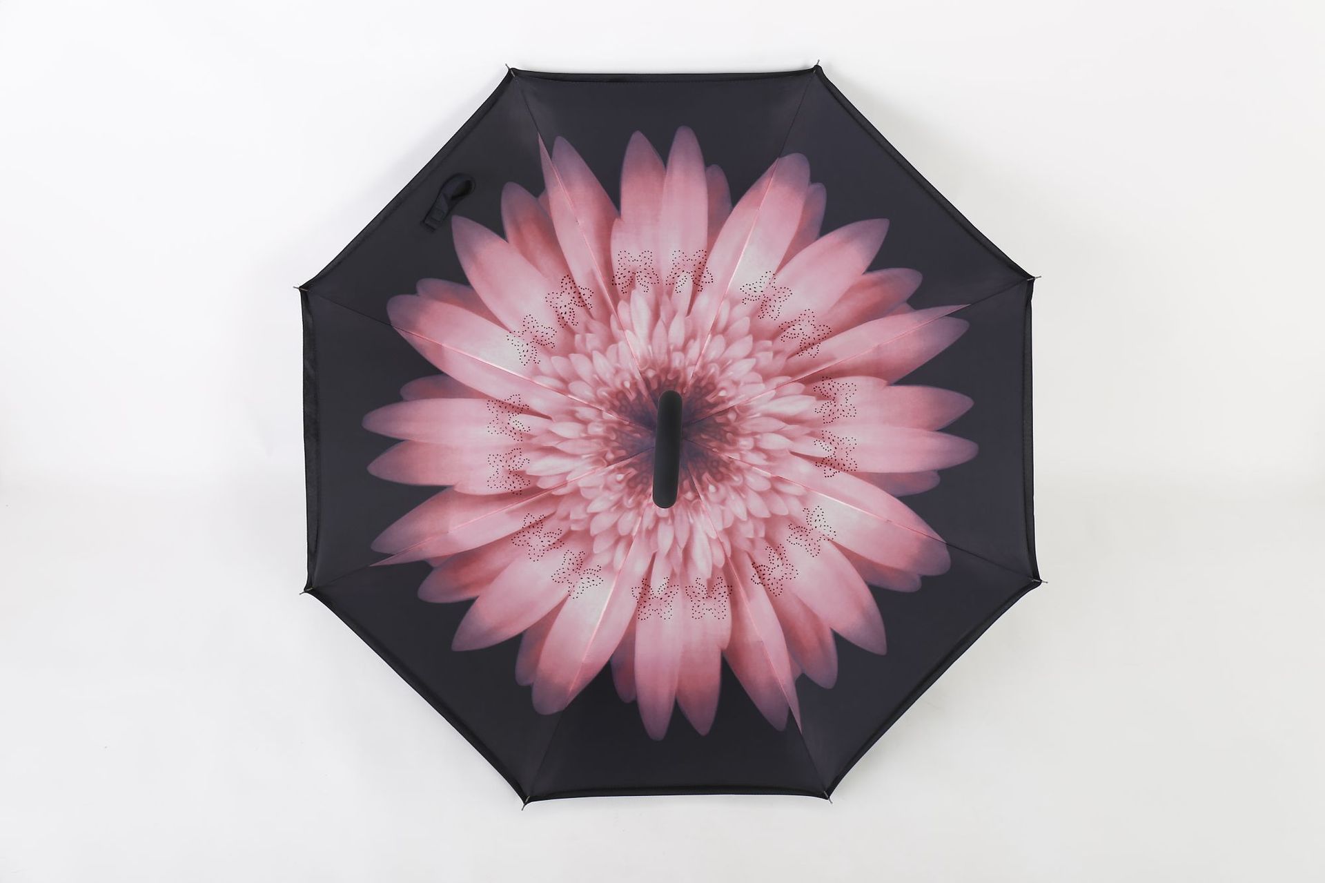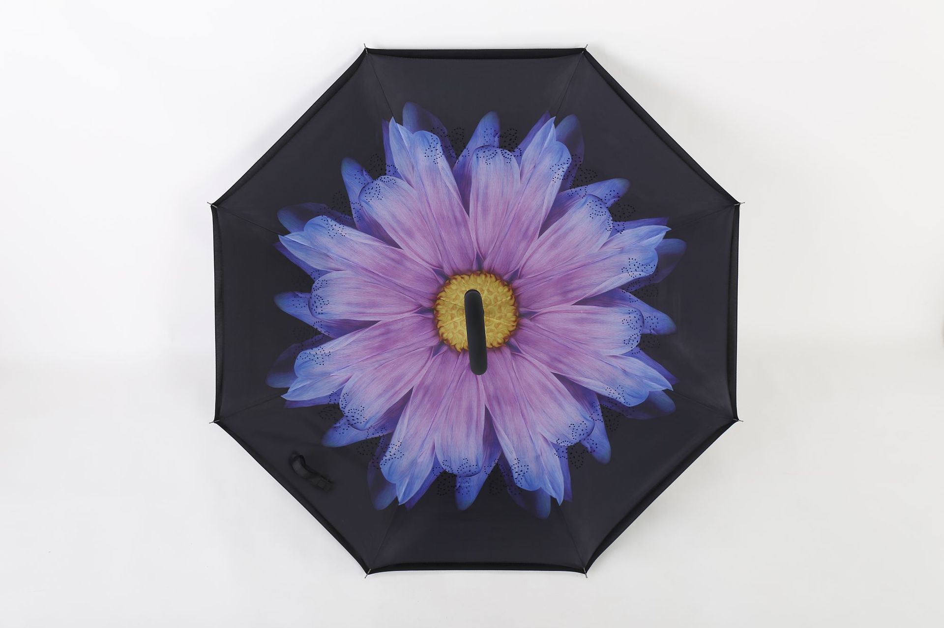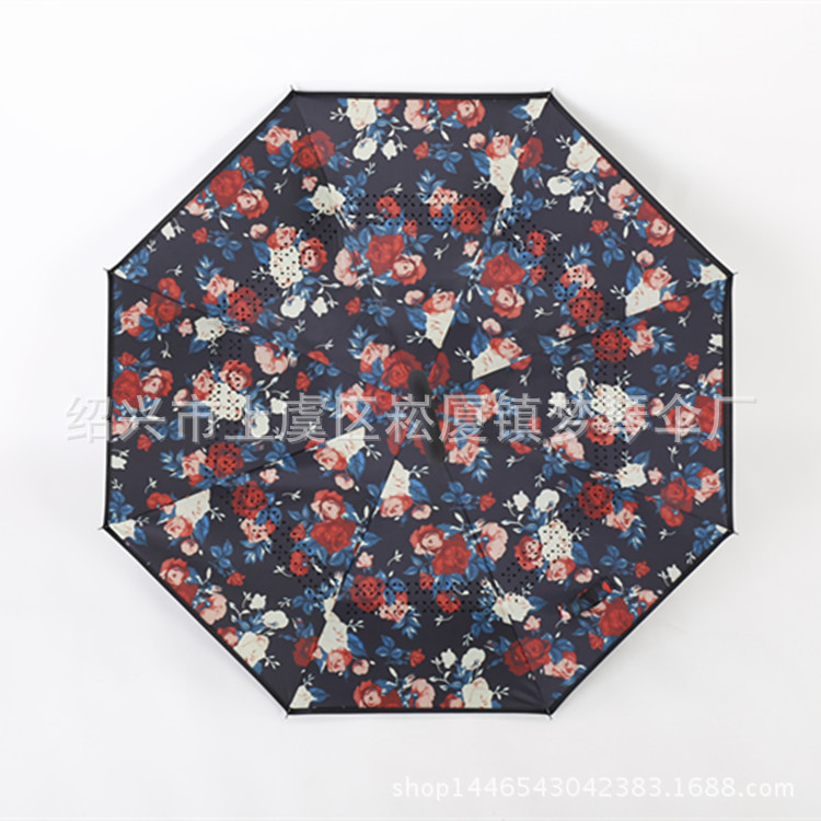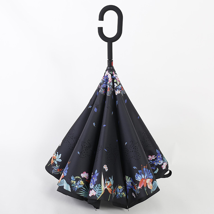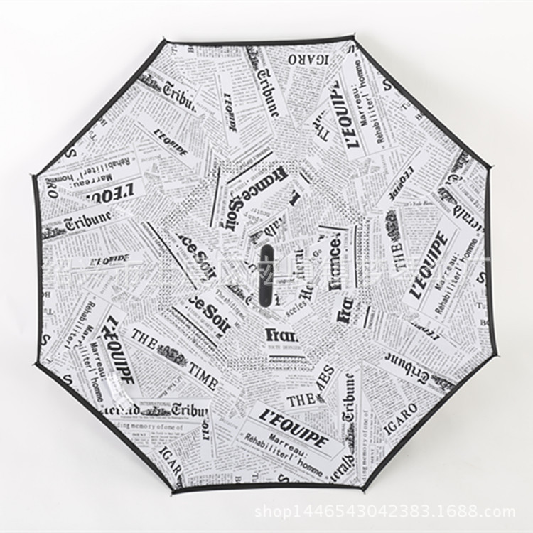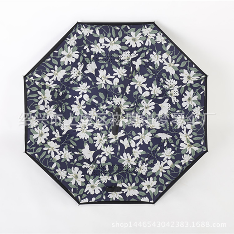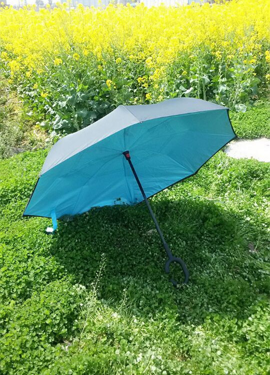 도매 창조적 인 스트레이트 폴 긴 핸들 C 형 핸즈프리 리버스 우산 생산 더블 레이어 서 우산 로고 광고 우산스토어 가기