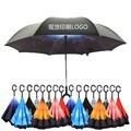 도매 창조적 인 스트레이트 폴 긴 핸들 C 형 핸즈프리 리버스 우산 생산 더블 레이어 서 우산 로고 광고 우산