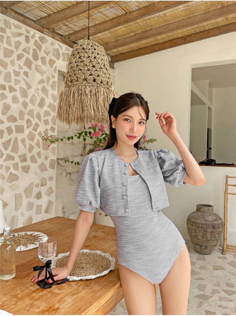 수영복 여성 2024 년 새 보라색 원피스 비키니 블라우스 선스크린 섹시 백리스 슬리밍 순수한 욕망 온천 휴가