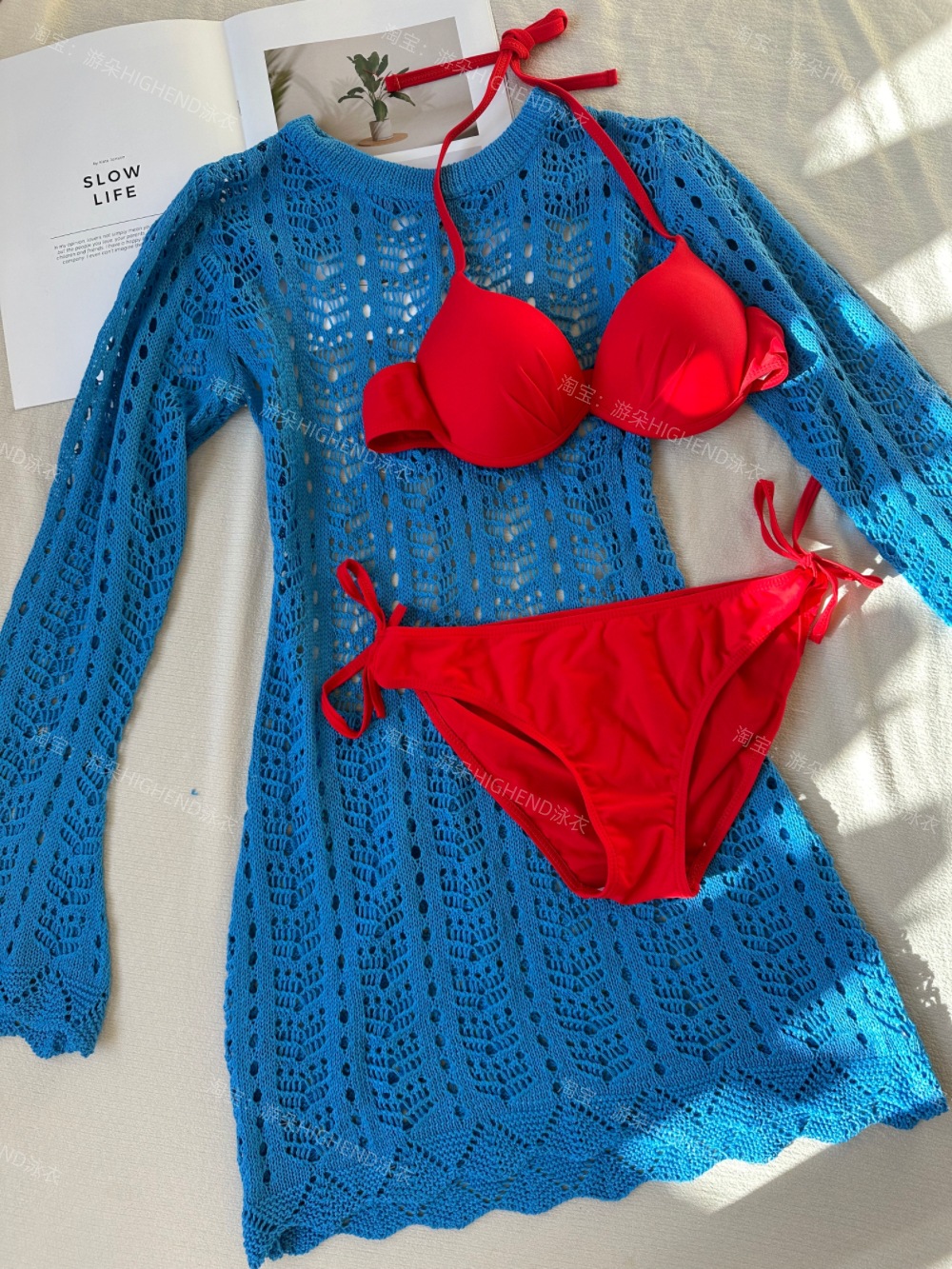 Youduo Thailand Holiday New Bikini 니트 할로우 섹시한 스파이스 걸스 모임 분할 수영복 비치 3 피스 세트스토어 가기