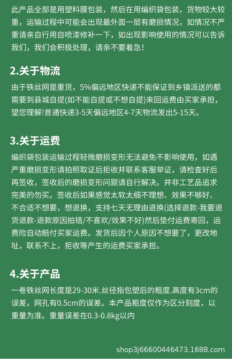 • 1.5m 높이 - 3.0mm 두께 - 13.65kg - 30m 길이 - 6cm 구멍