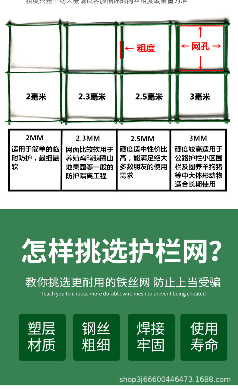 • 1.8m 높이 - 3.0mm 두께 - 15.05kg - 30m 길이 - 6cm 구멍