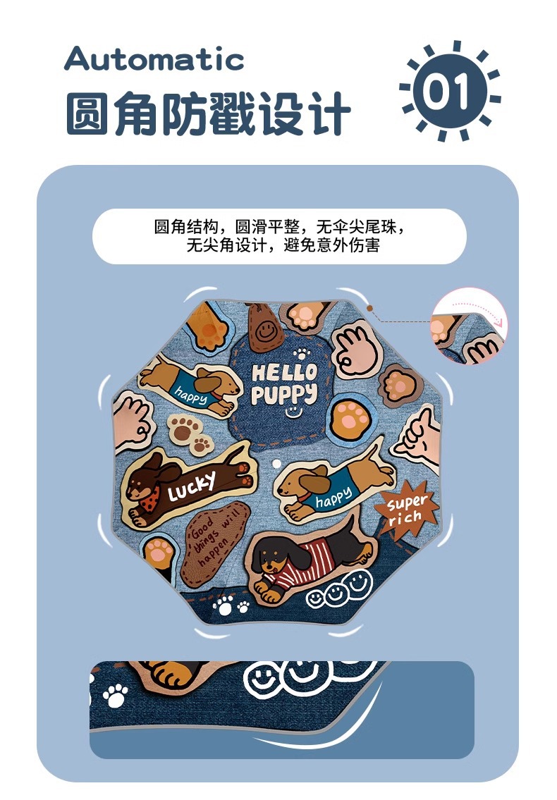• [8본/둥근 모서리 안티 찌르기] 닥스훈트 스티커 - 안전 및 반동 자동 개폐식 + 반사 스트립