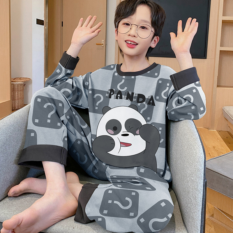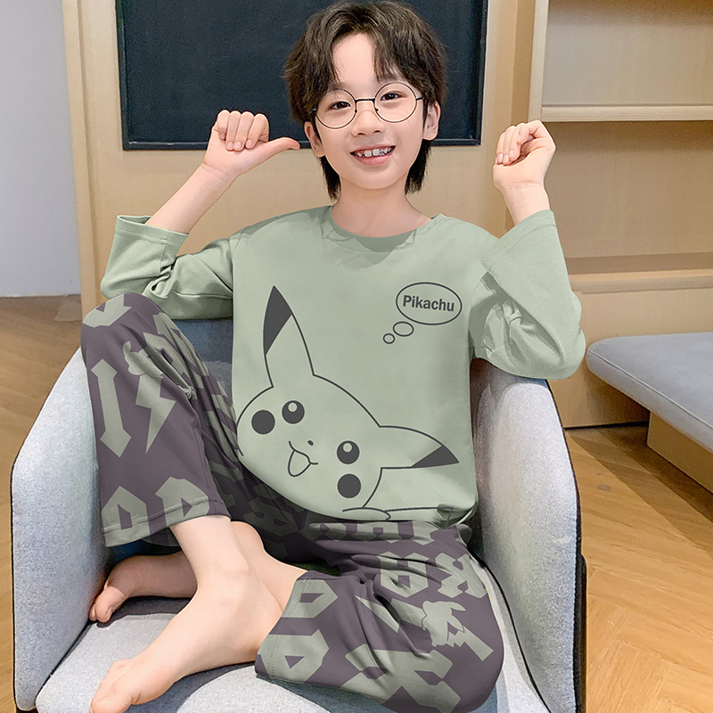 소년 잠옷 긴 소매 학생 얇은 봄과 가을 2025 새로운 중대형 어린이 만화 작은 소년 홈 의류 세트