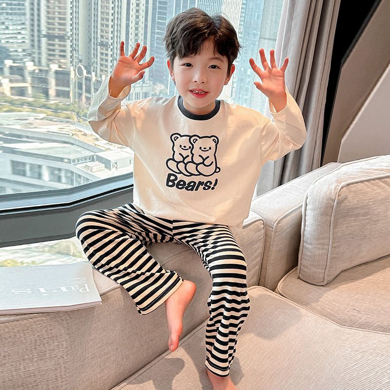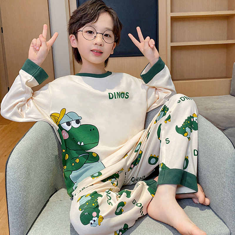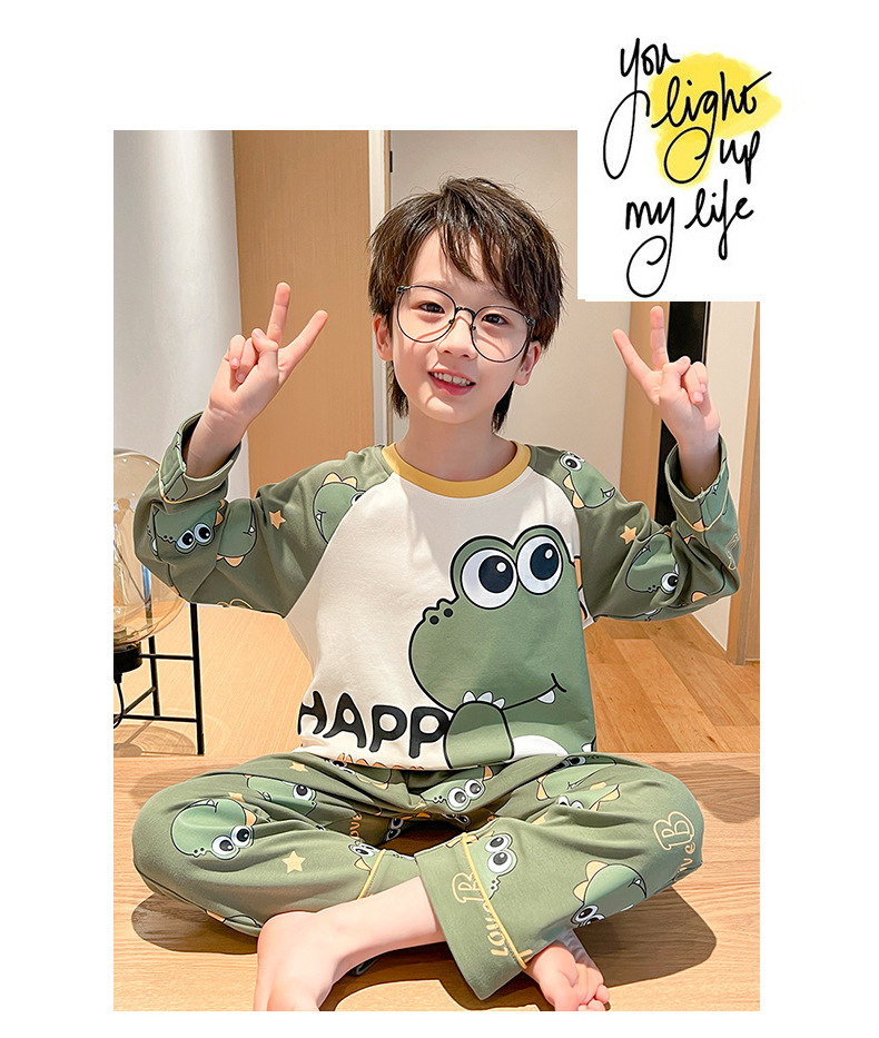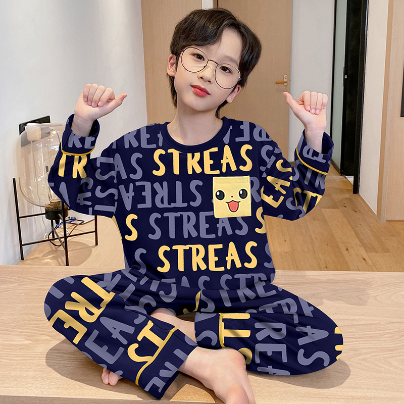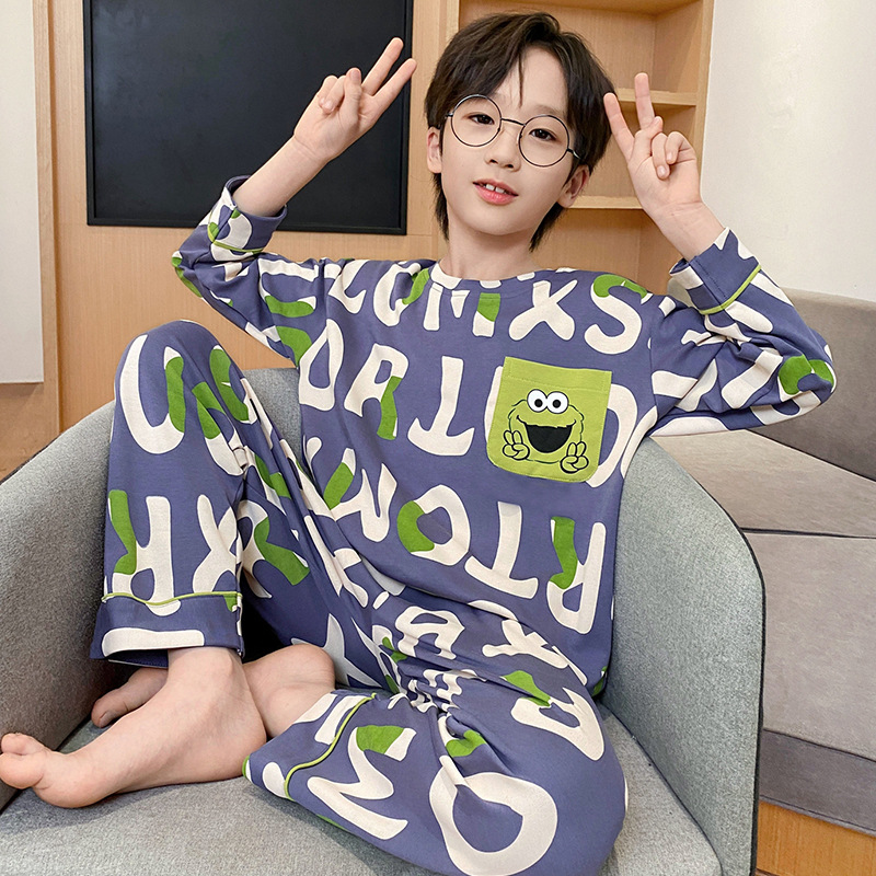 소년 잠옷 긴 소매 학생 얇은 봄과 가을 2025 새로운 중대형 어린이 만화 작은 소년 홈 의류 세트스토어 가기