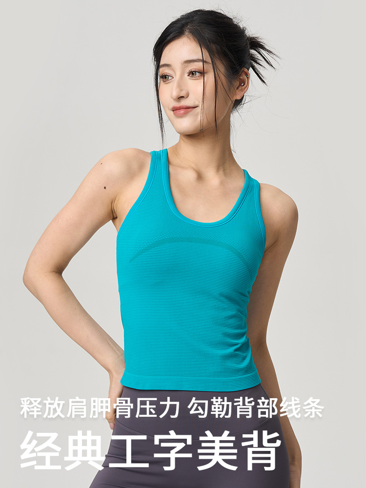Lulu 같은 스타일의 원피스 스포츠 조끼 가슴 패드 달리기 피트니스 요가 세트 충격 흡수 통기성 아름다운 뒷옷