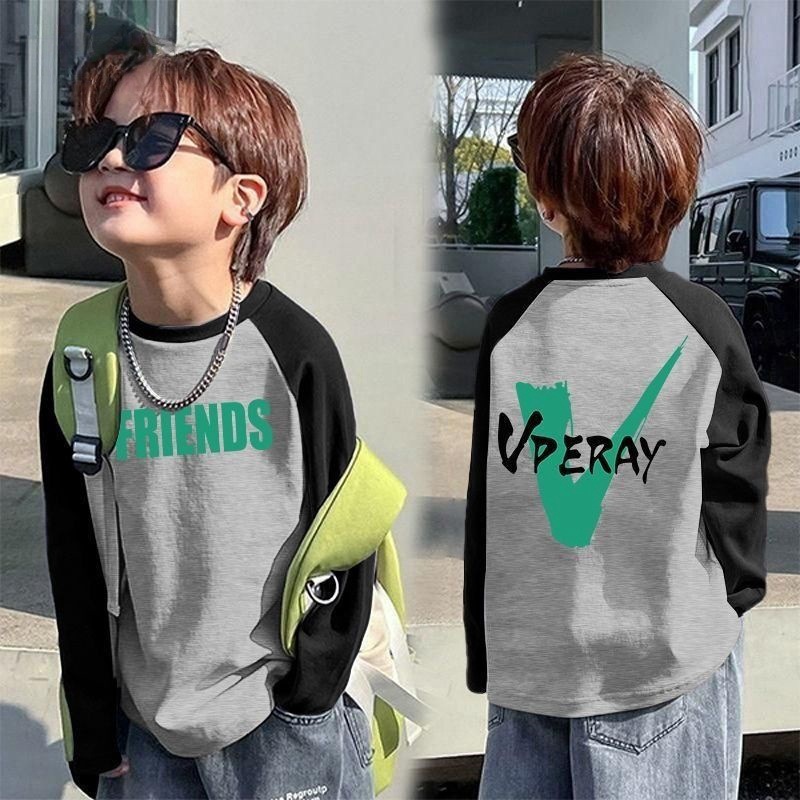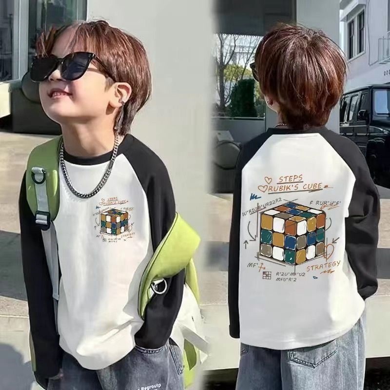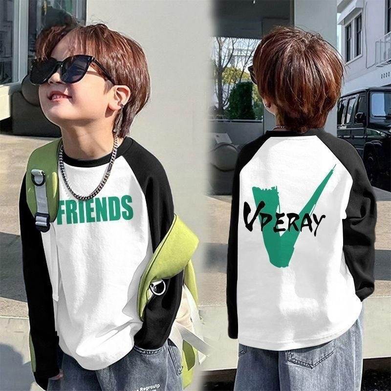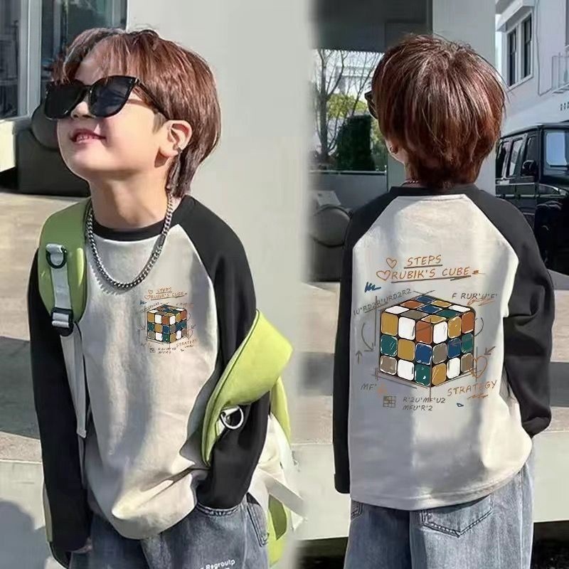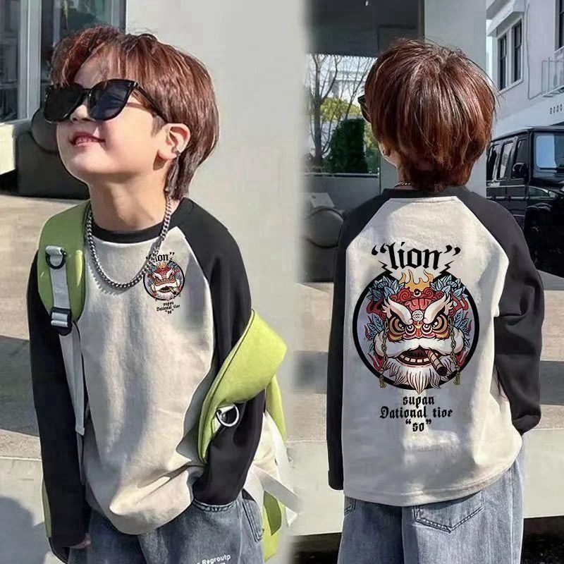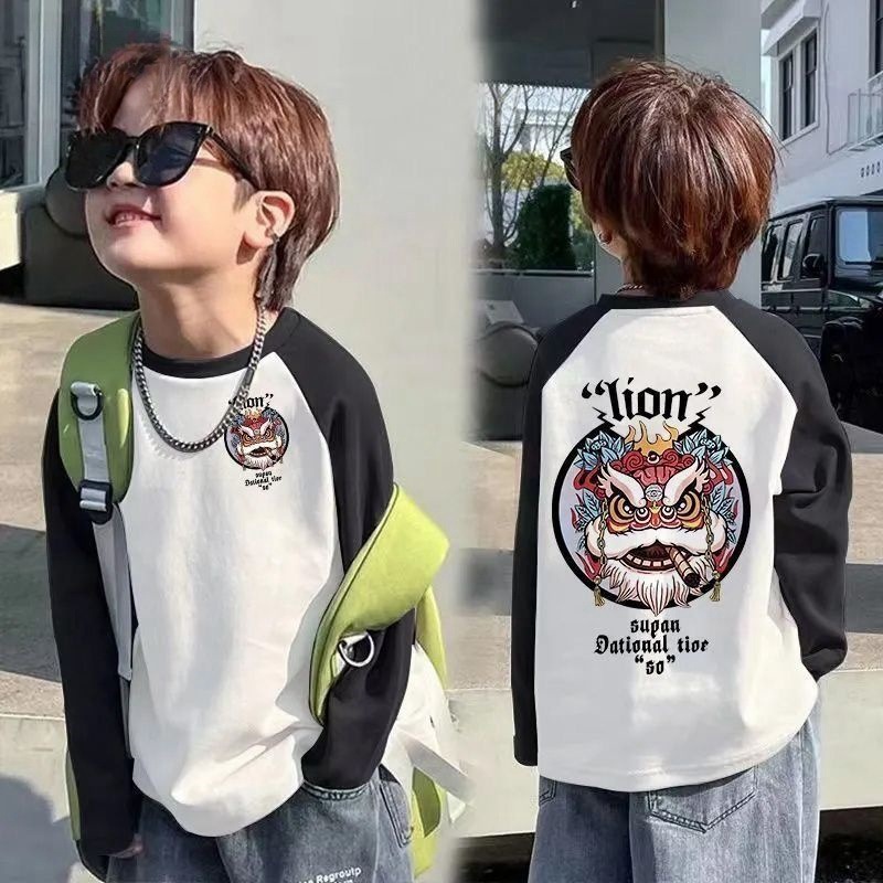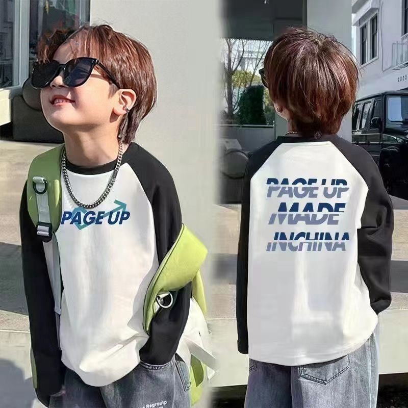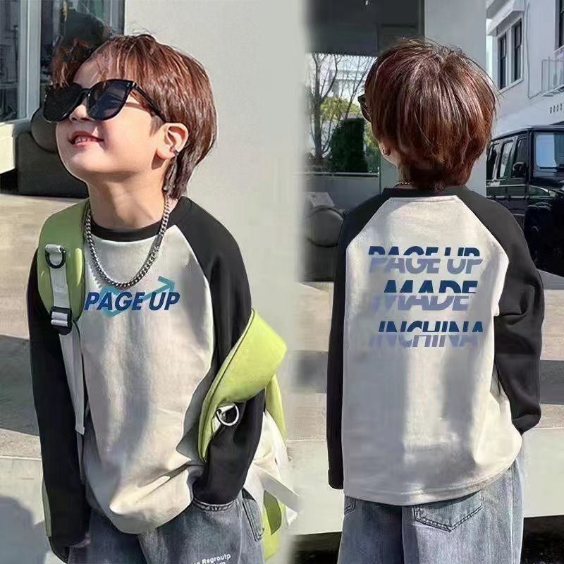 봄과 가을 어린이 새 면 긴팔 대비 컬러 미디어와 대형 어린이 만화 잘 생긴 스티칭 캐주얼 올매치 베이스 탑스토어 가기