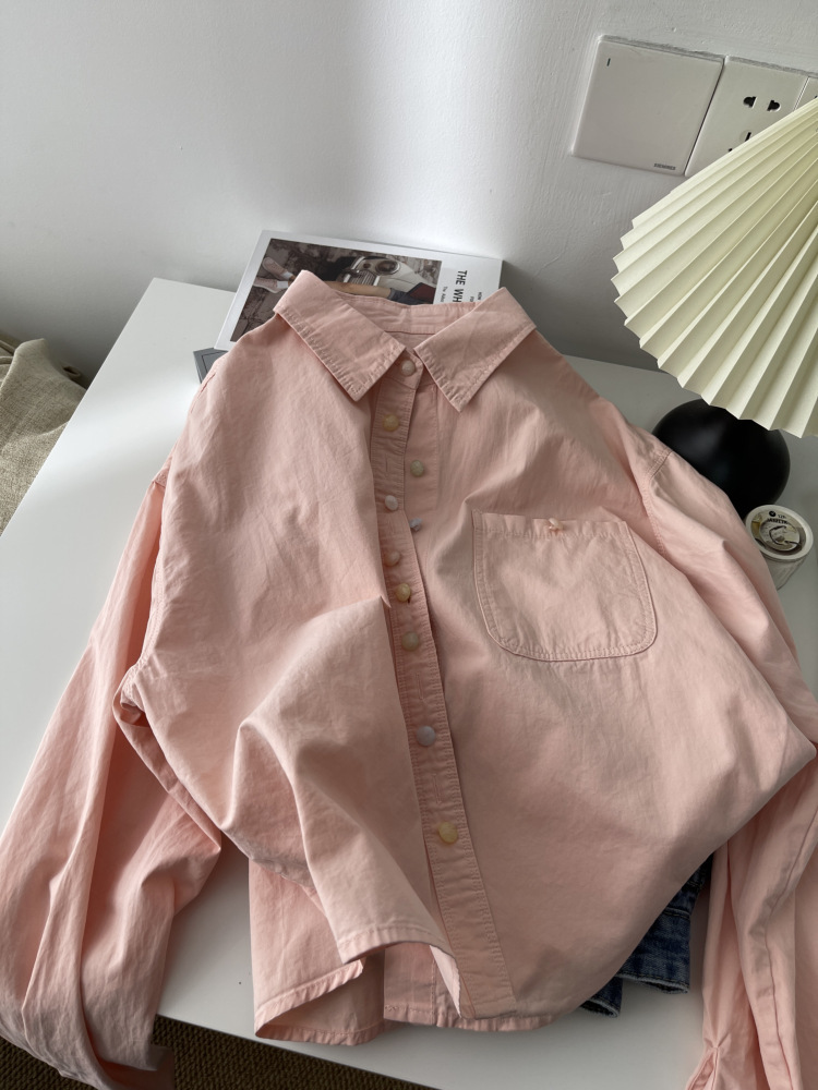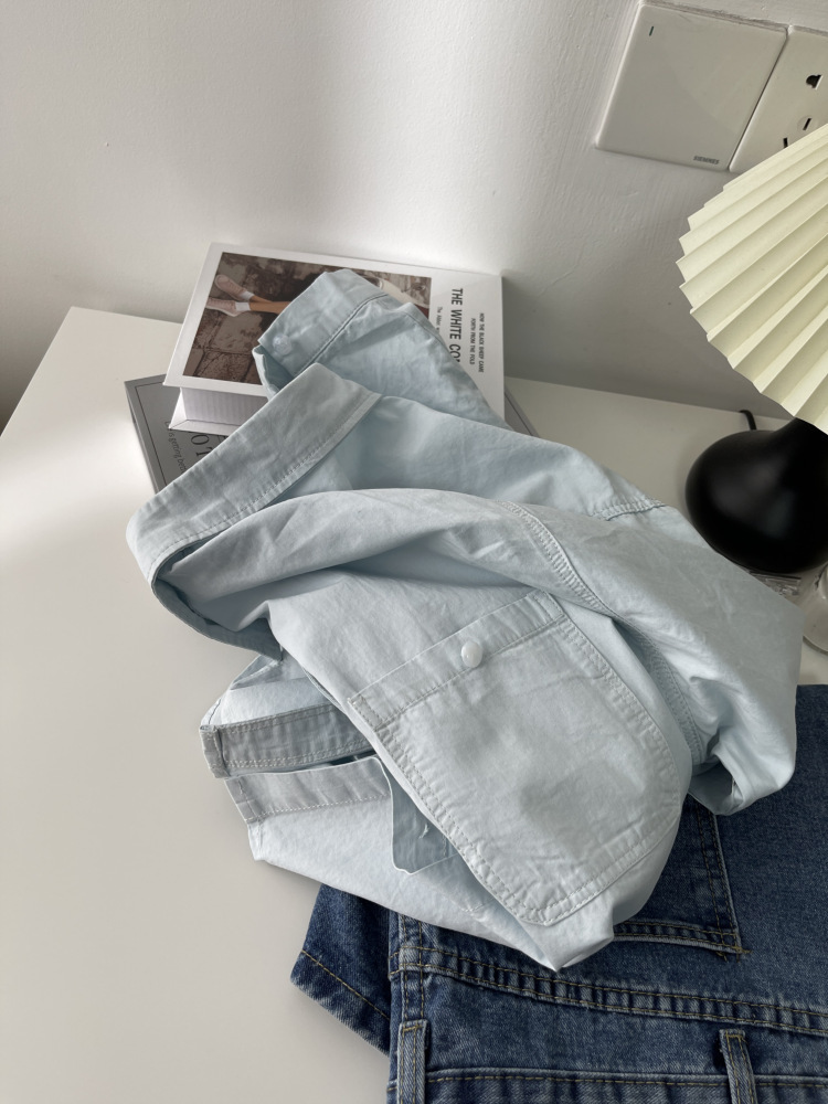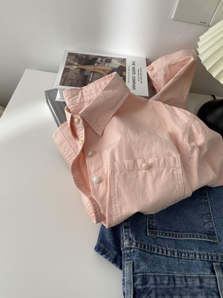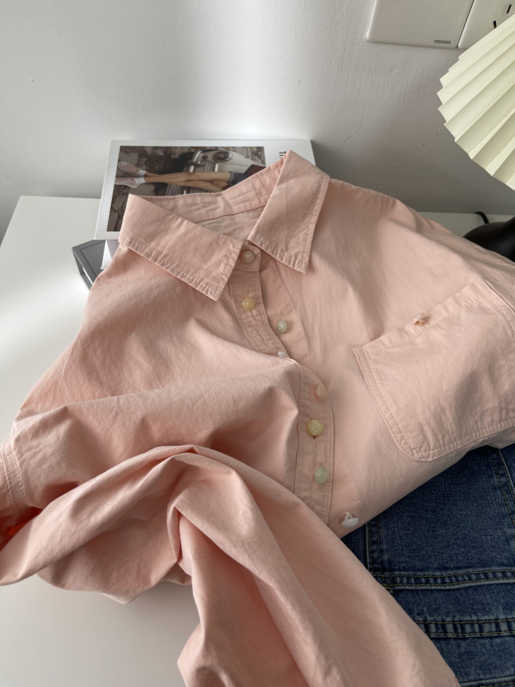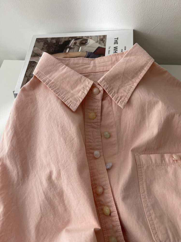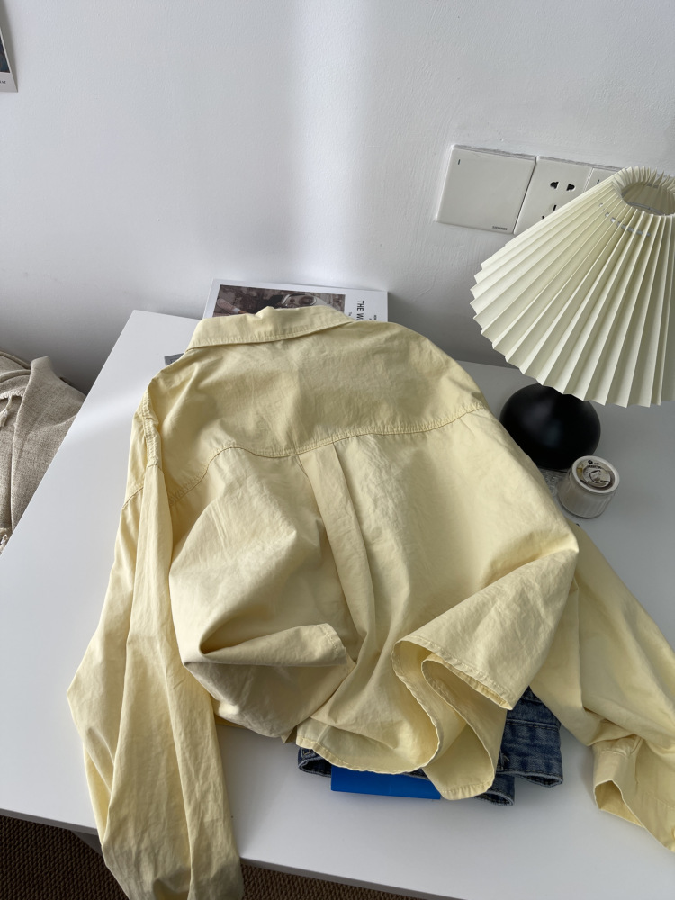 2025 짧은 셔츠 여성의 새로운 스타일 작은 내부 스택 셔츠 긴 소매 미터 감각 틈새 화이트 톱 5211