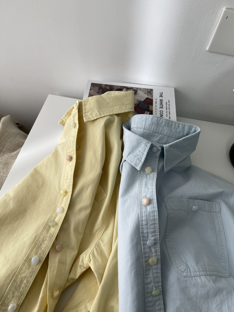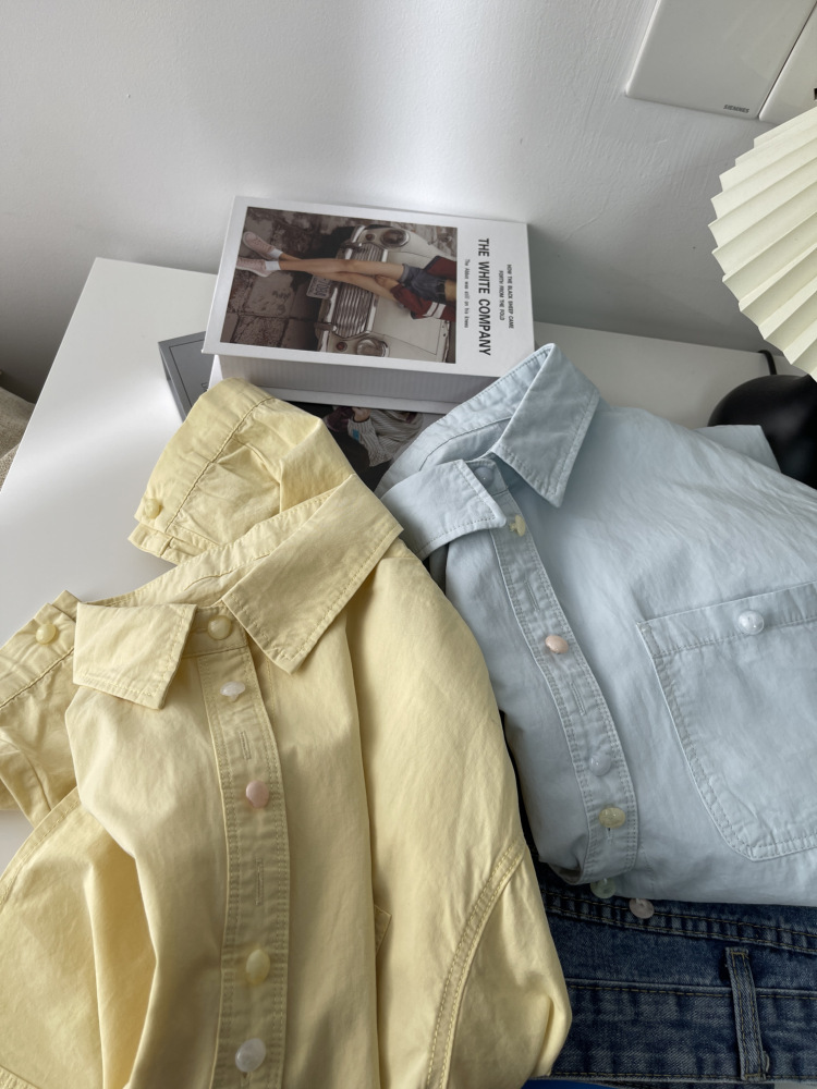 2025 짧은 셔츠 여성의 새로운 스타일 작은 내부 스택 셔츠 긴 소매 미터 감각 틈새 화이트 톱 5211스토어 가기
