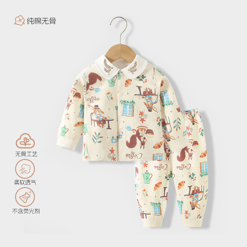 2025년 봄 신상 남녀 아기 분리형 의류 A급 순면 밀착형 유아 가을옷 가을바지 세트 외출용스토어 가기