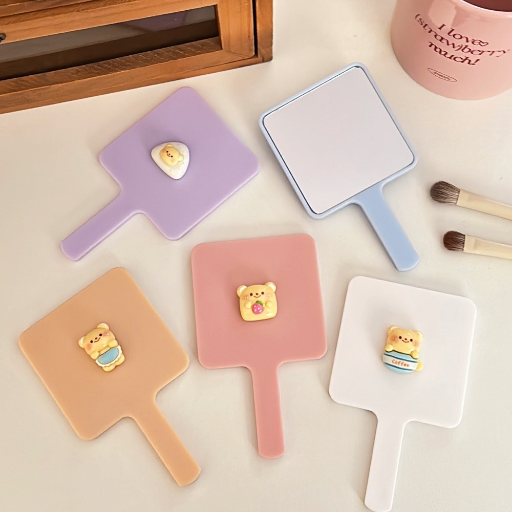 새로운 창조적 인 미니 메이크업 거울 귀여운 곰 거울 높은 가치 소녀 심장 핸들 거울 휴대 작은 거울스토어 가기