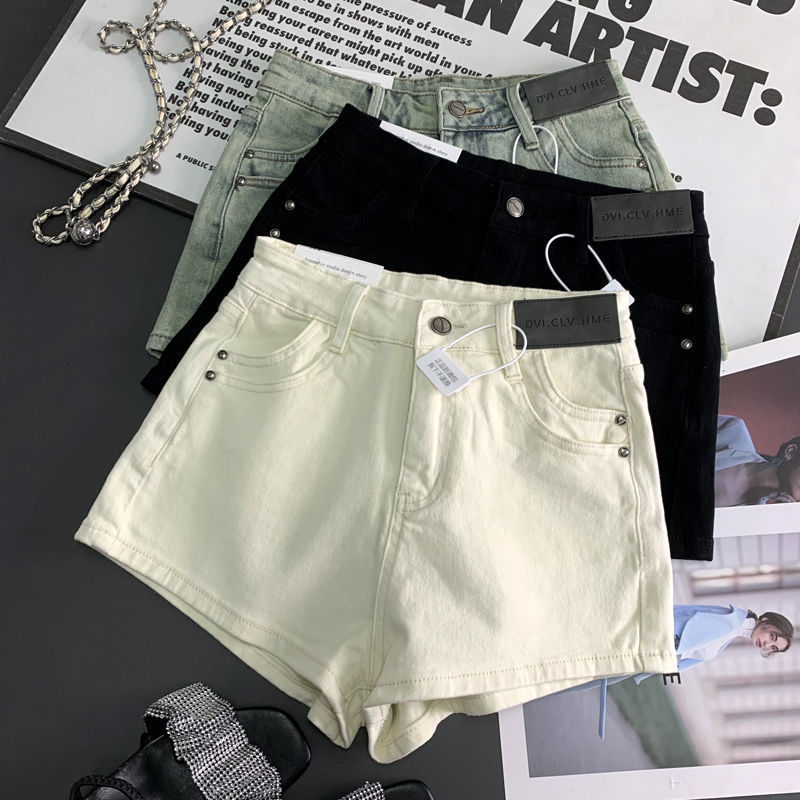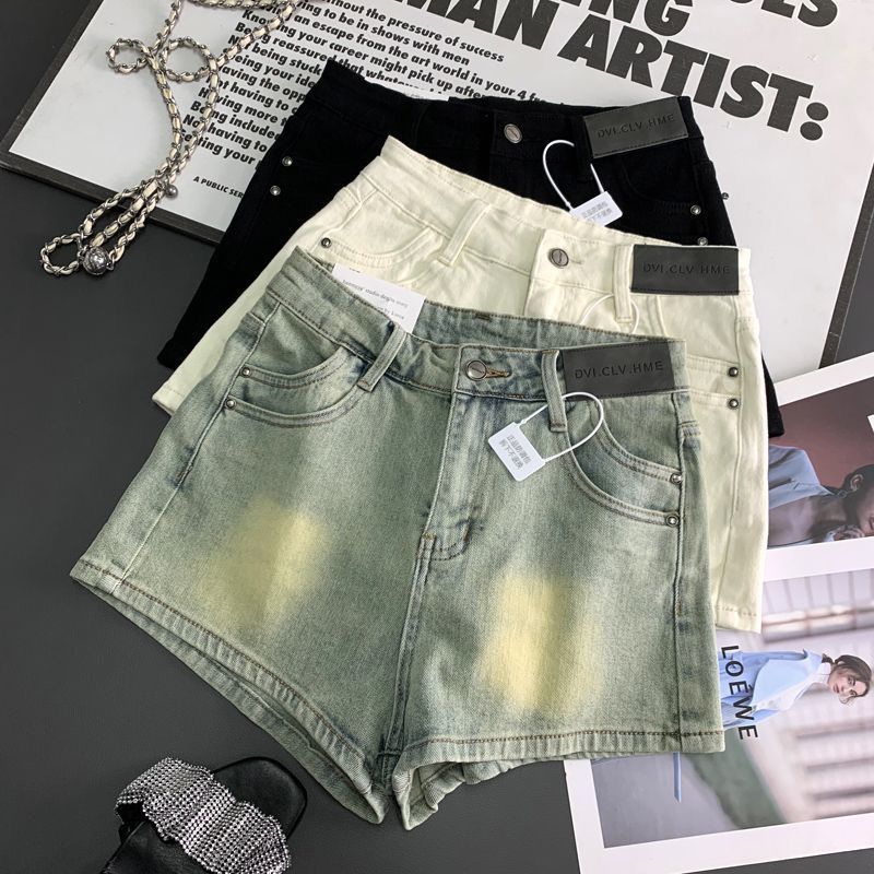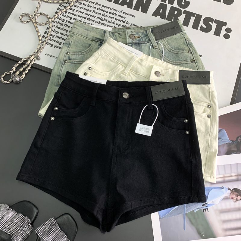 한국 스타일 가죽 브랜드 스트레치 슬림 핏 데님 반바지 여성 2025 년 여름 새로운 높은 허리 슬리밍 핫 팬츠스토어 가기