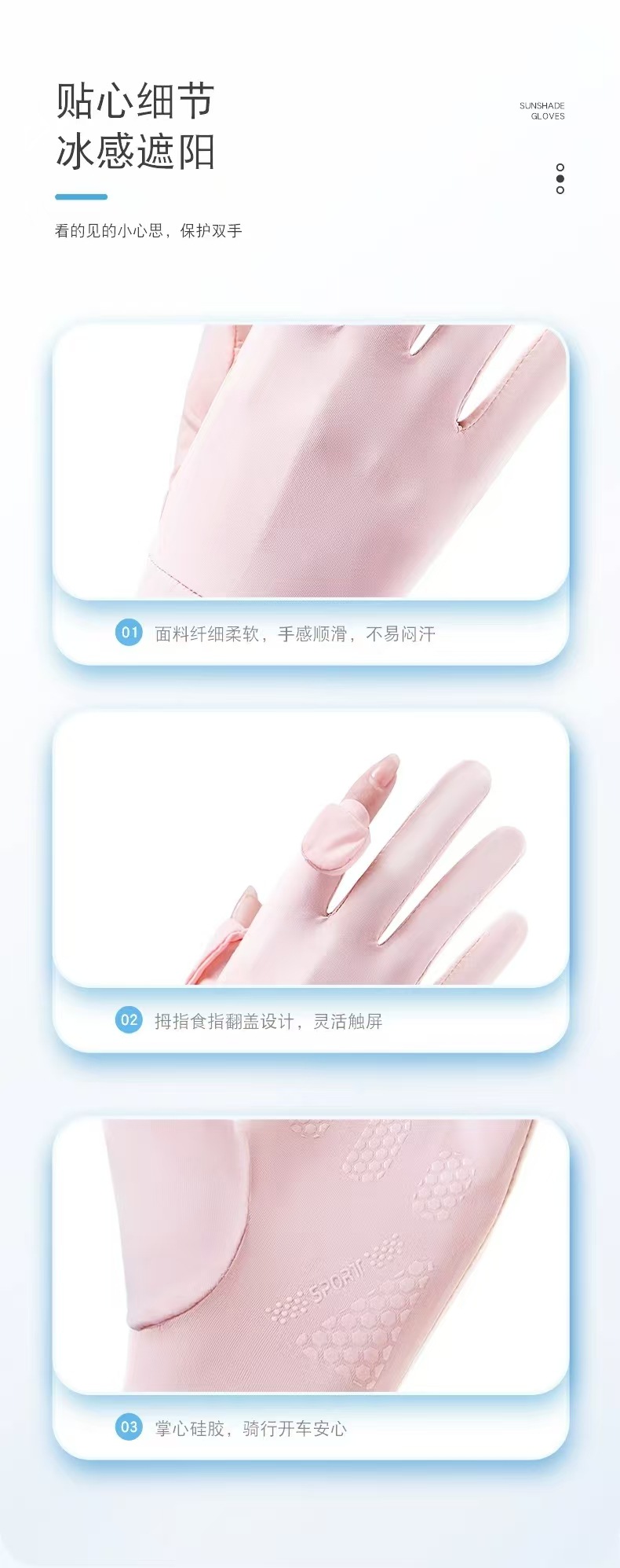 선스크린 아이스 실크 장갑 운전 여성 야외 스포츠 승마 손가락 플립 터치 스크린 통기성 손가락 플립 라이트 아이스 장갑스토어 가기