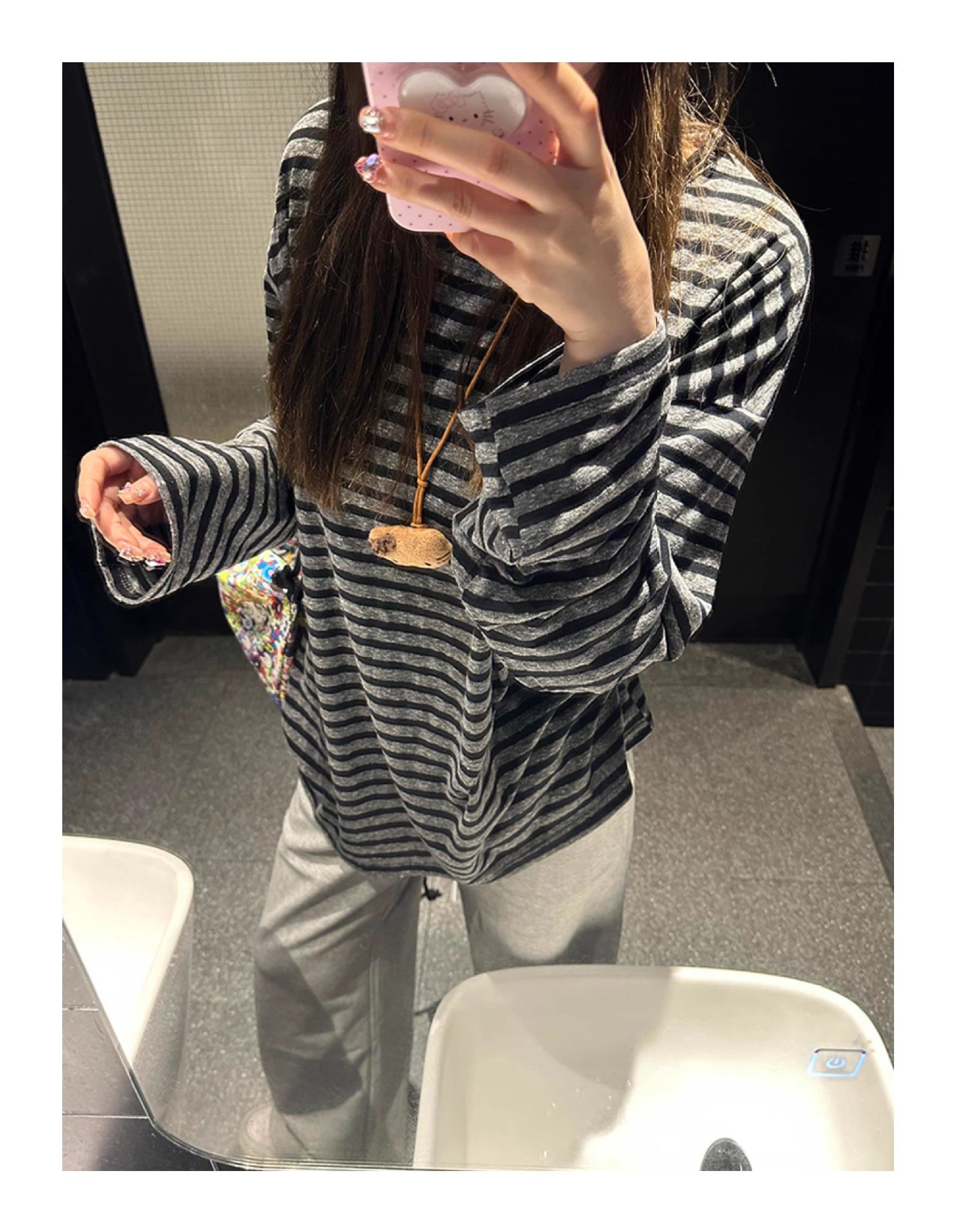 여성을위한 한국 대비 색 줄무늬 긴팔 티셔츠 초가을 2025 새로운 스타일 편안한 게으른 스타일 한국 스타일 루즈 탑