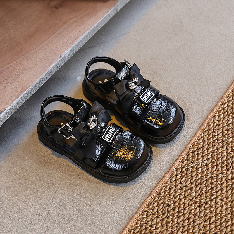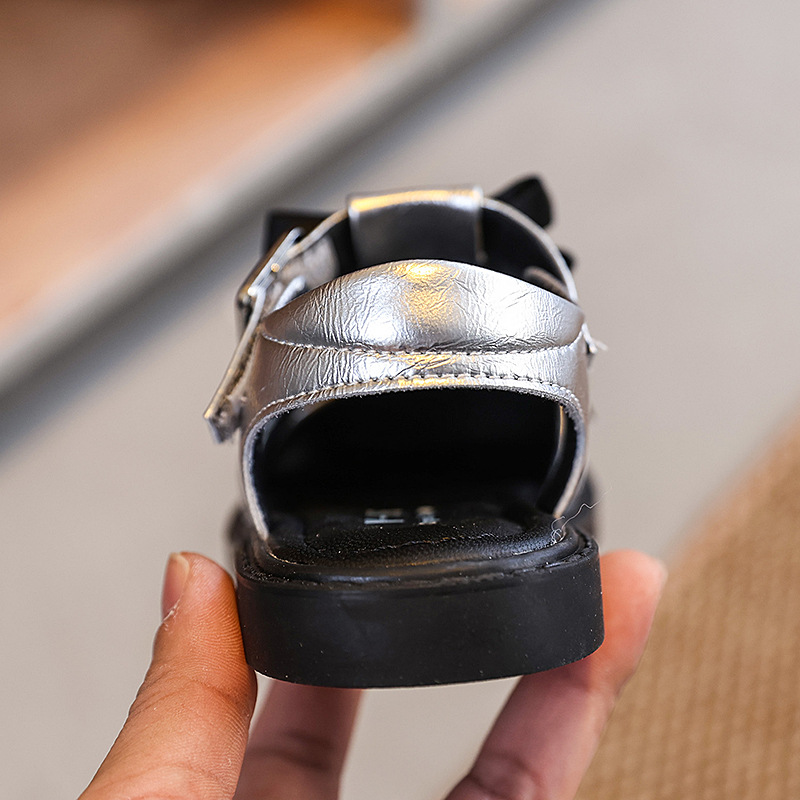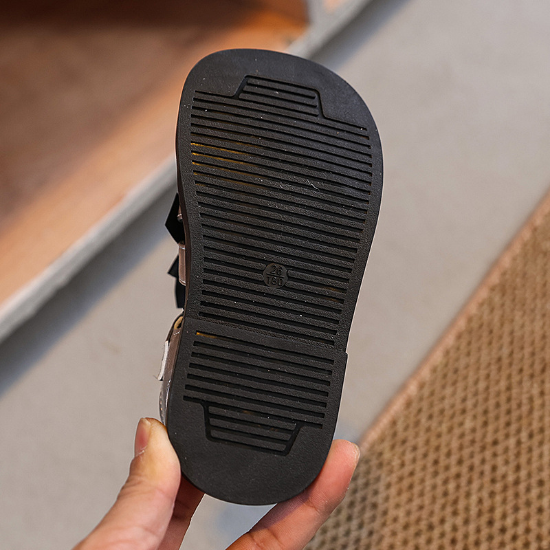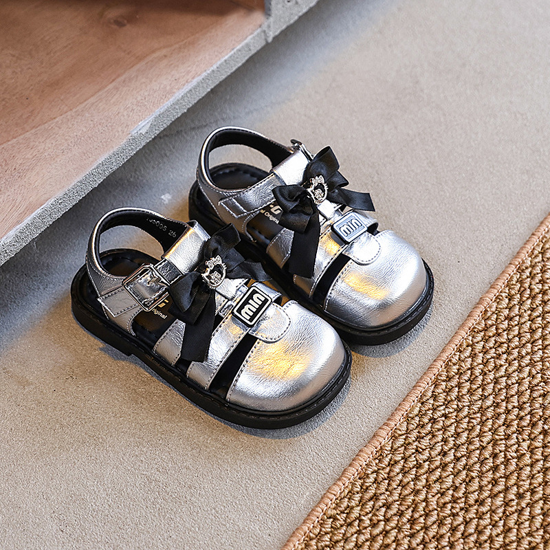 2025 년 여름 신형 한국식 소녀 발가락 포장 로마 샌들 걸스 보우 소프트 단독 미끄럼 방지 세미 샌들