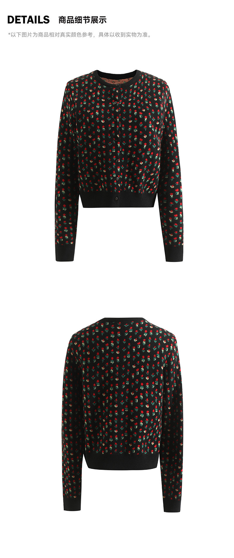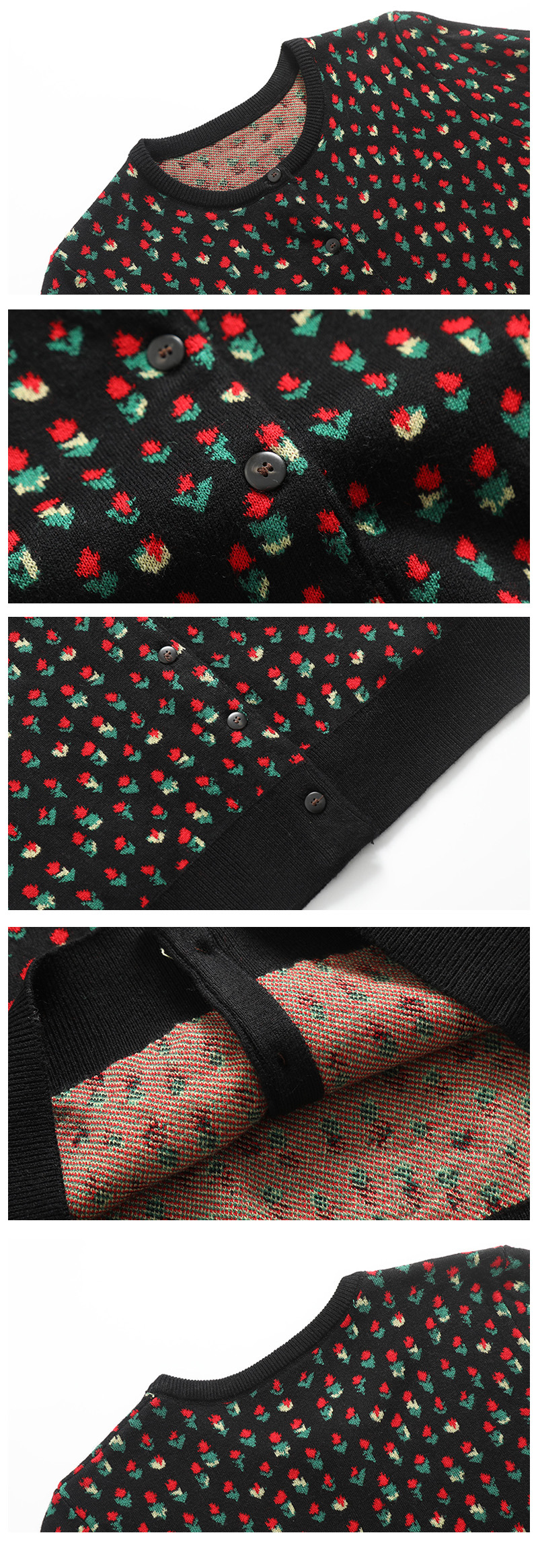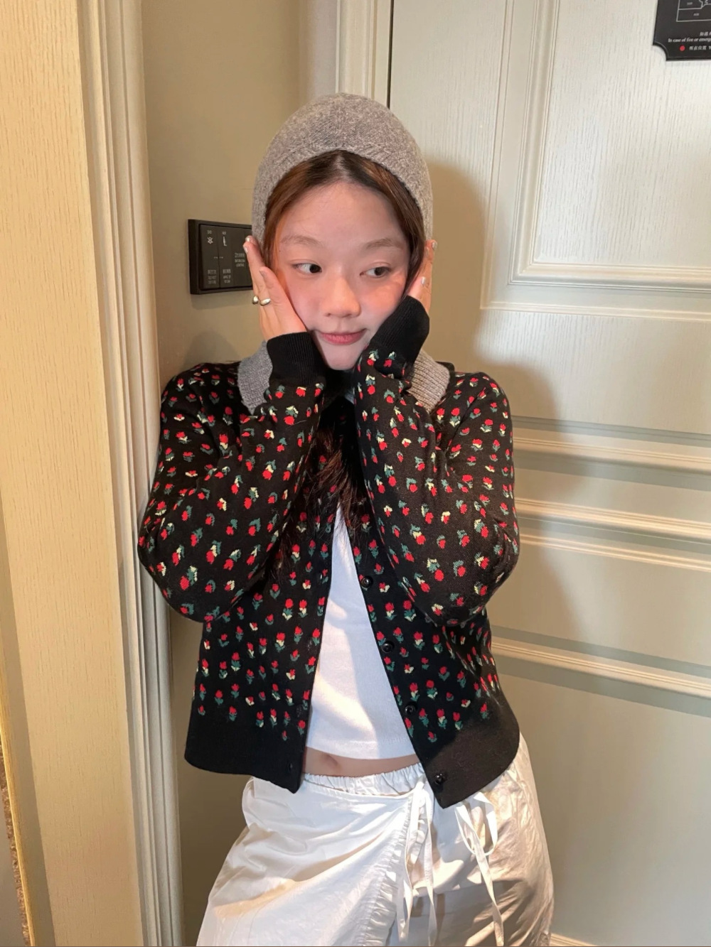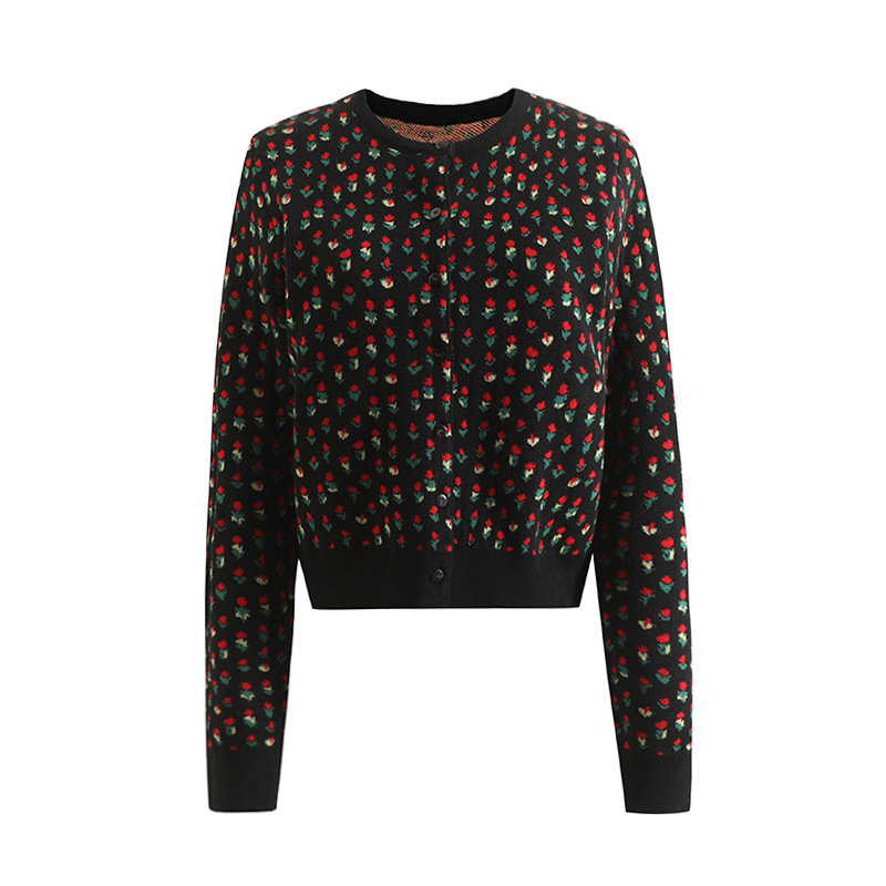 새로운 봄 꽃 자카드 라운드 넥 슬림 핏 짧은 스택 양모 니트 카디건 스웨터 코트 여자 5104