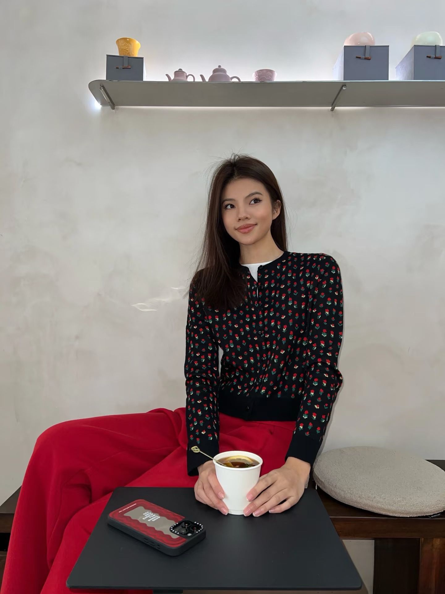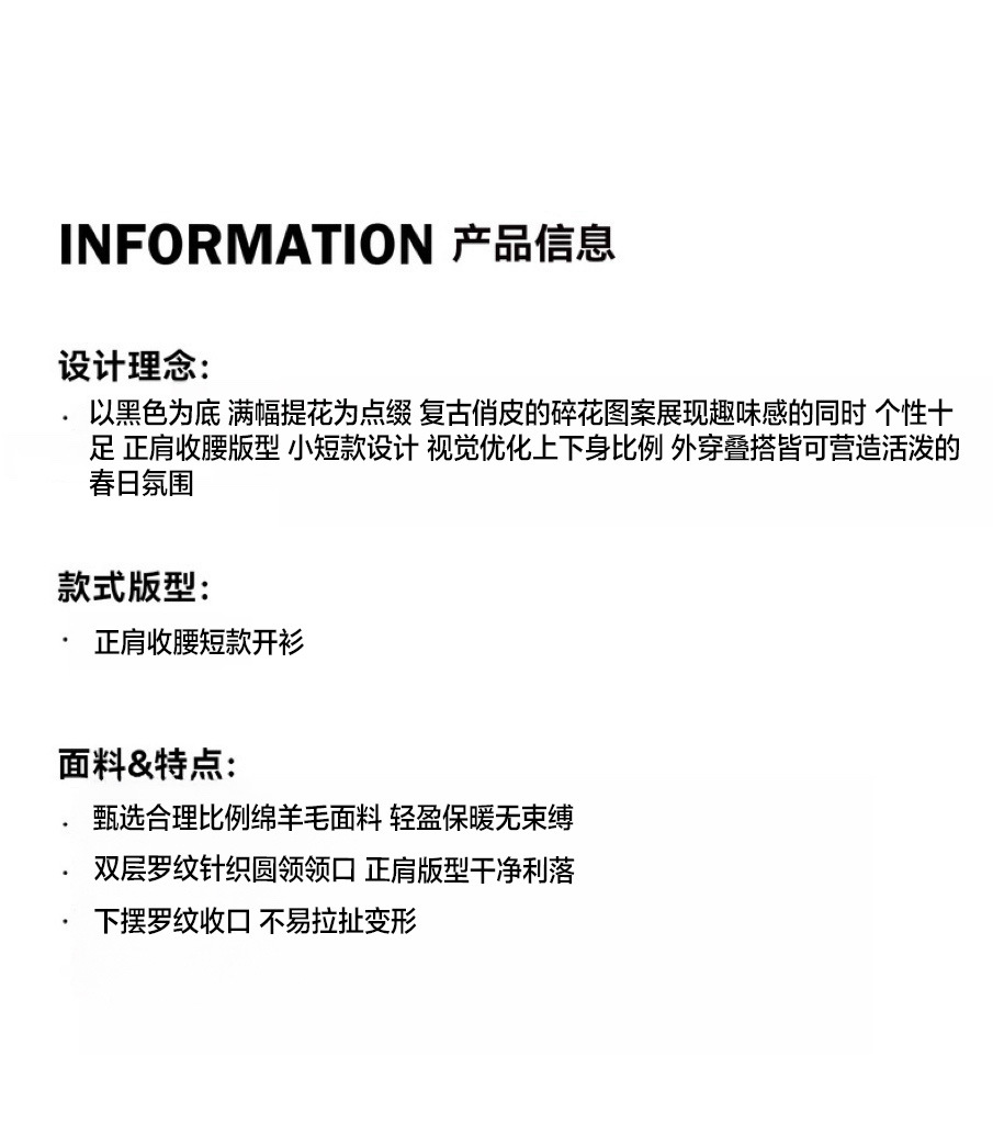 새로운 봄 꽃 자카드 라운드 넥 슬림 핏 짧은 스택 양모 니트 카디건 스웨터 코트 여자 5104스토어 가기