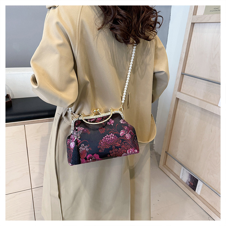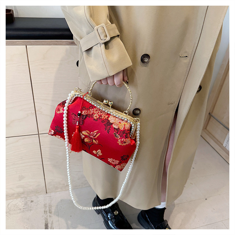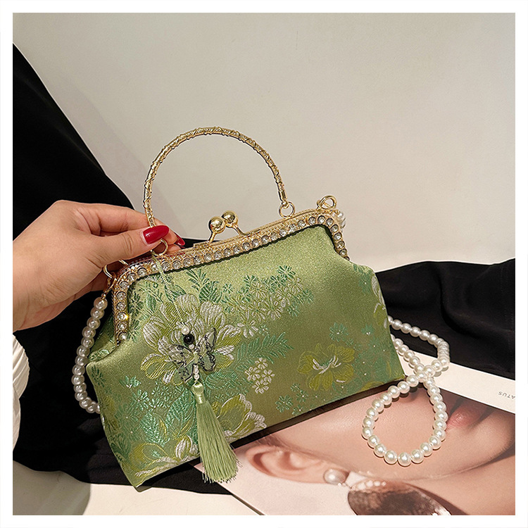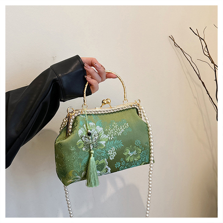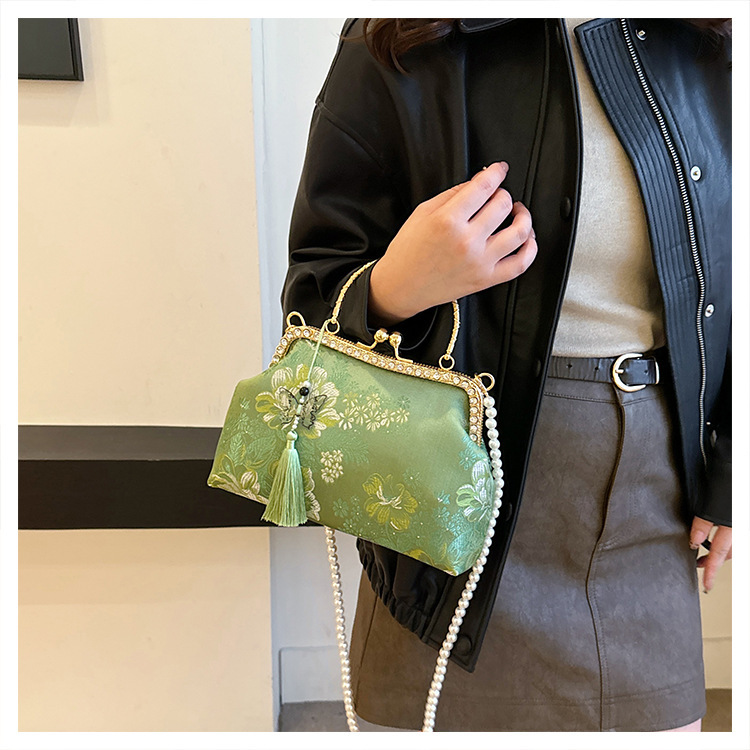 국경 간 여성 자수 다이아몬드 클립 버클 쉘 백 2024 새로운 술 크로스 백 자수 청삼 휴대용 쉘 백스토어 가기