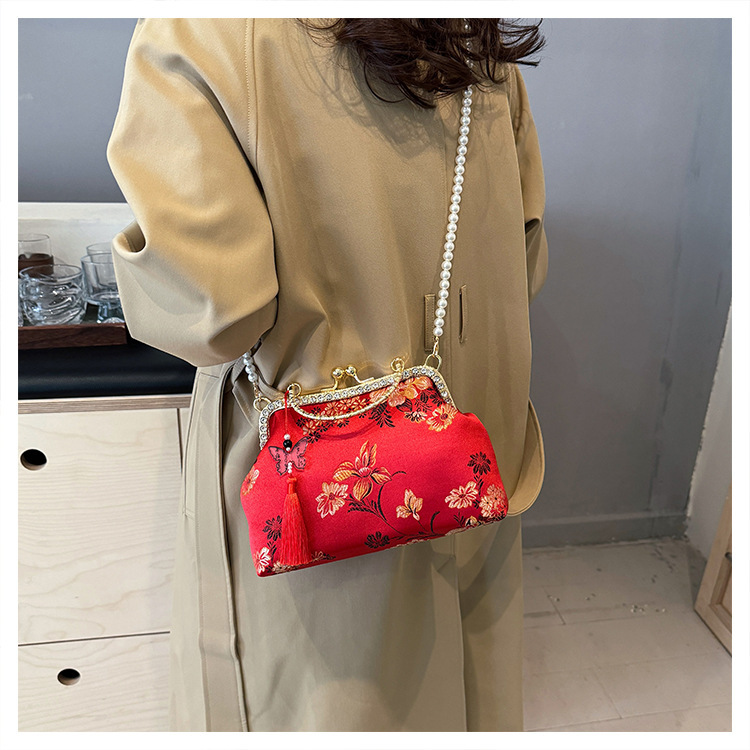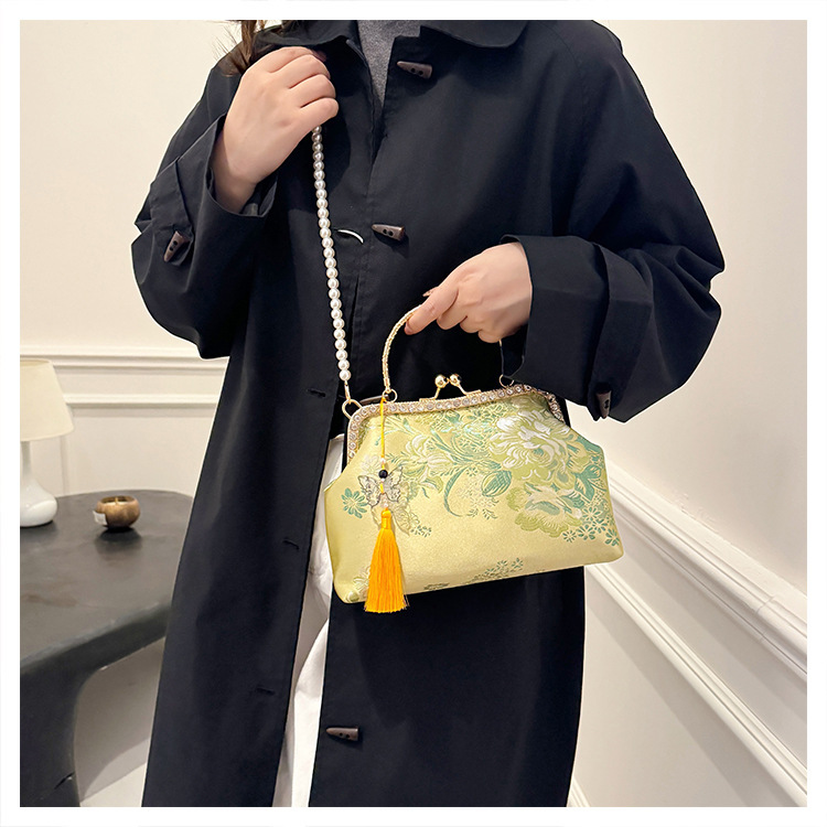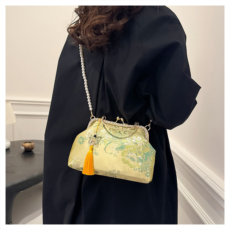 국경 간 여성 자수 다이아몬드 클립 버클 쉘 백 2024 새로운 술 크로스 백 자수 청삼 휴대용 쉘 백