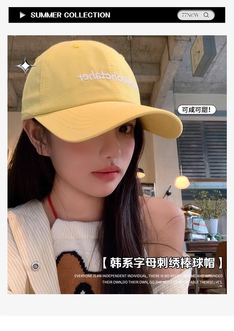 한국식 노란 편지 자수 야구 모자 여자 2025 봄 새 얼굴 작은 모자 소프트 탑 올 매치 모자 표시