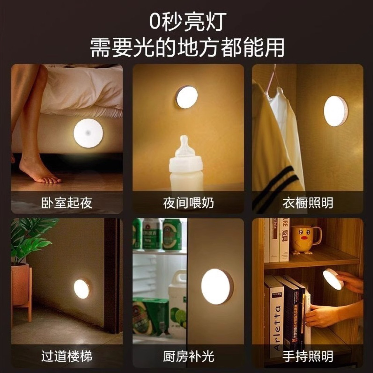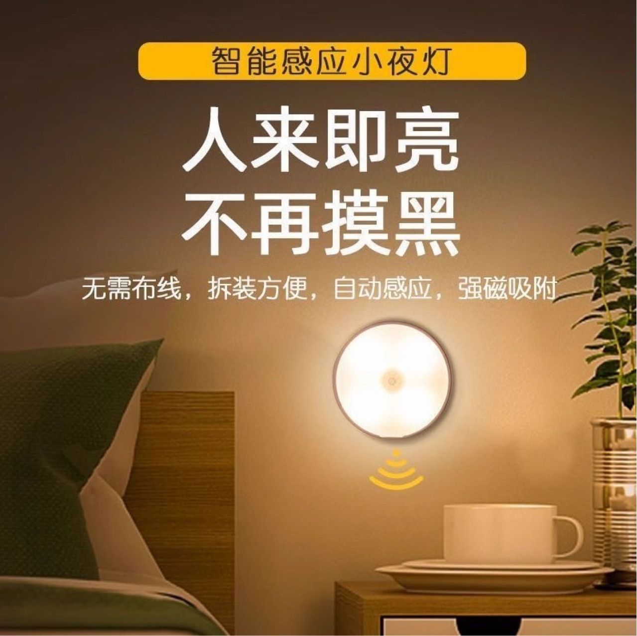 LED 인체 유도 자기 야간 조명 충전 에너지 절약 침대 옆 홈 수면 버튼 빛 학생 기숙사 홈스토어 가기