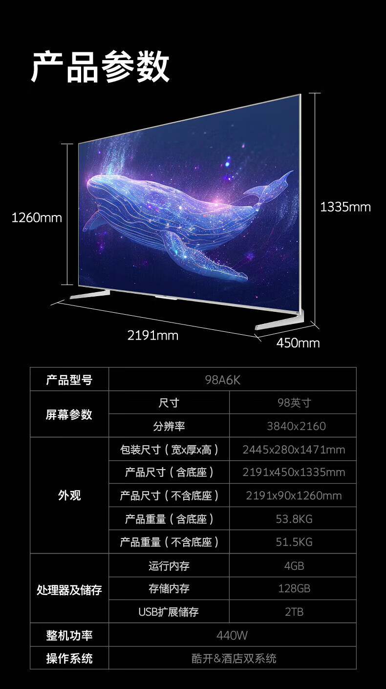 Skyworth 98A6K 98 인치 120HZ 높은 브러시 4K 지능형 네트워크 LCD 거대한 스크린 TV스토어 가기