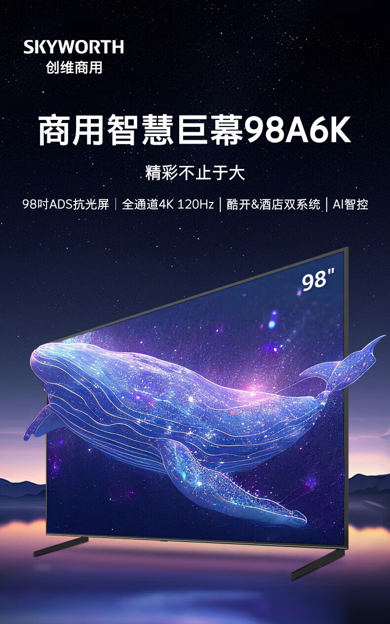 Skyworth 98A6K 98 인치 120HZ 높은 브러시 4K 지능형 네트워크 LCD 거대한 스크린 TV