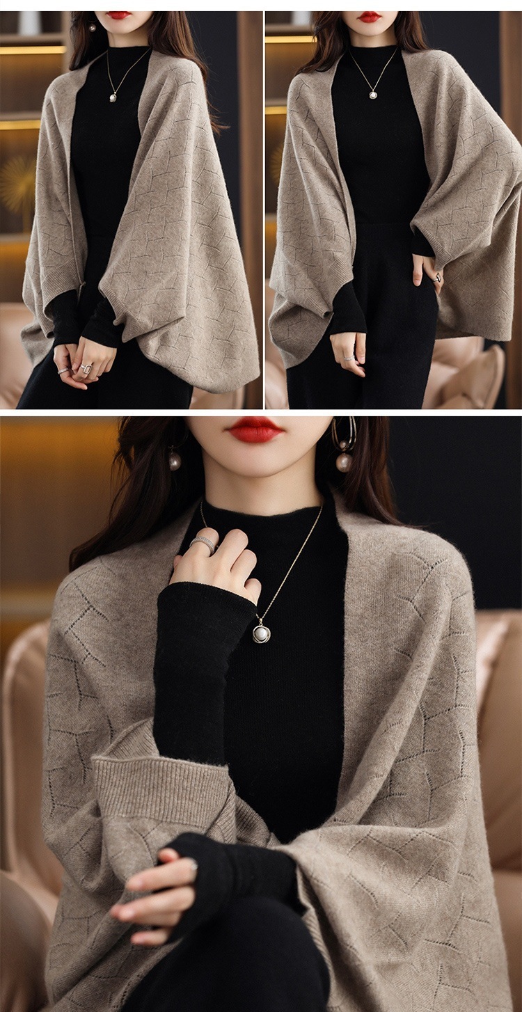 순모 니트 숄 스카프 겸용 가을 겨울 캐시미어 루즈핏 다용도 외투 케이프 가디건 패션 문예
