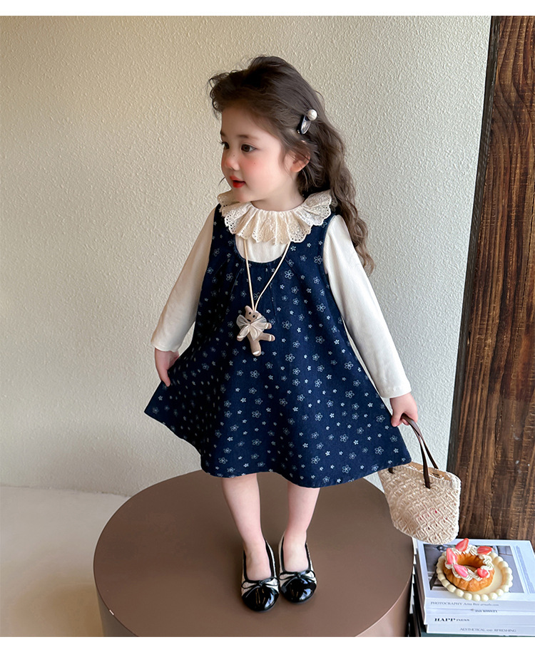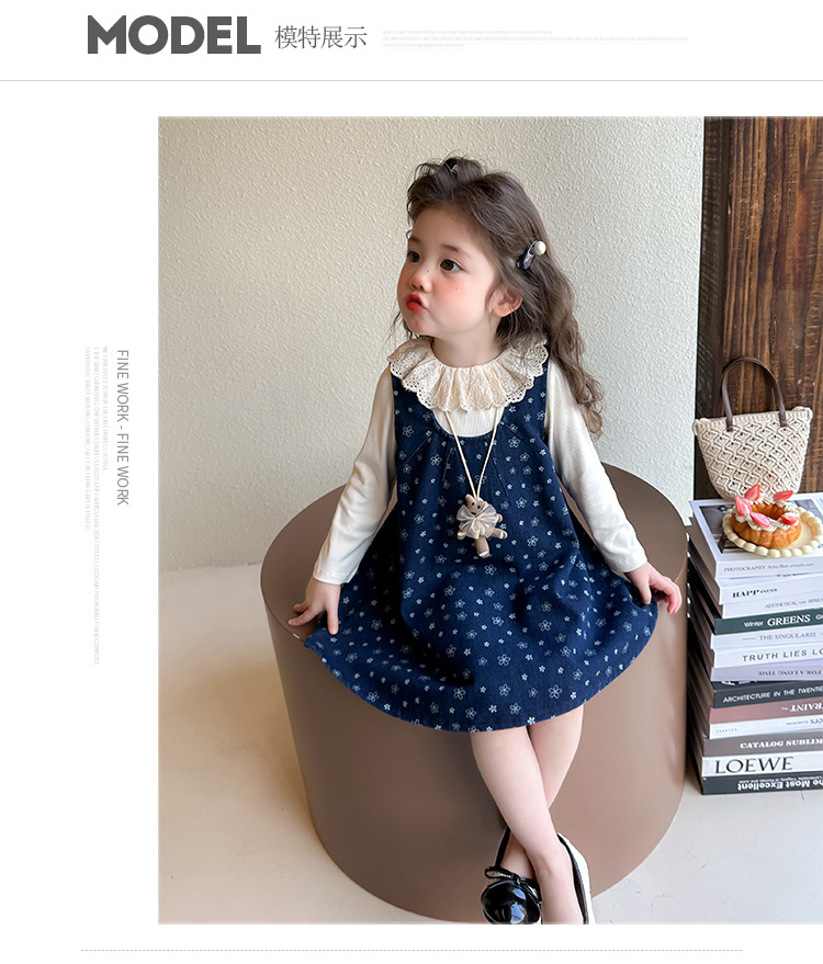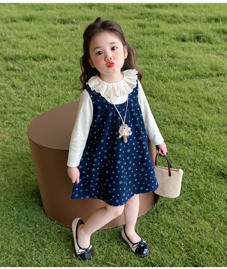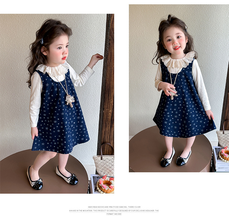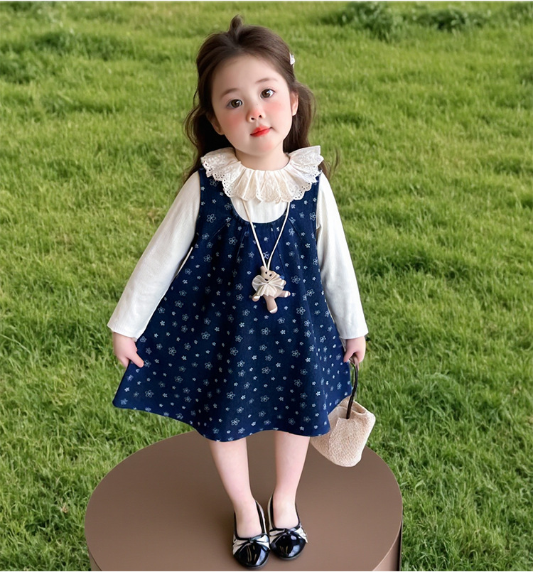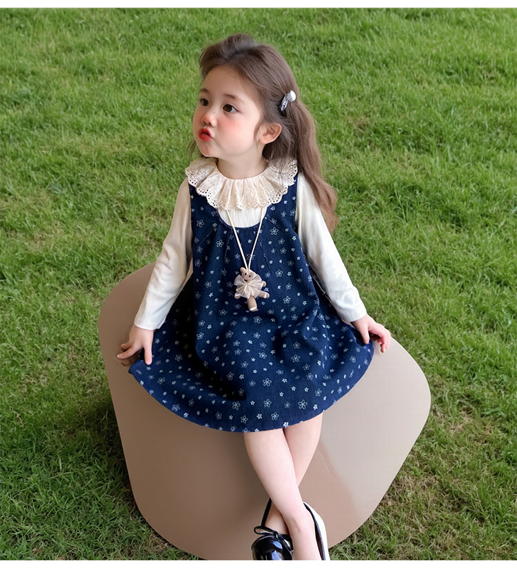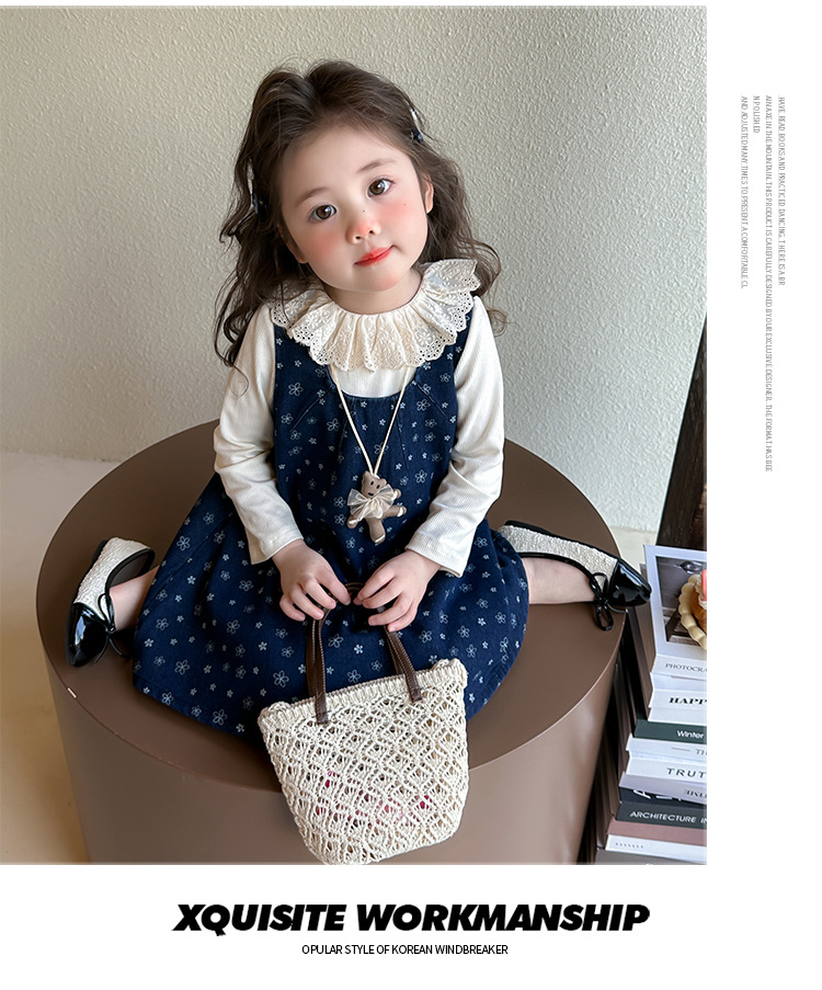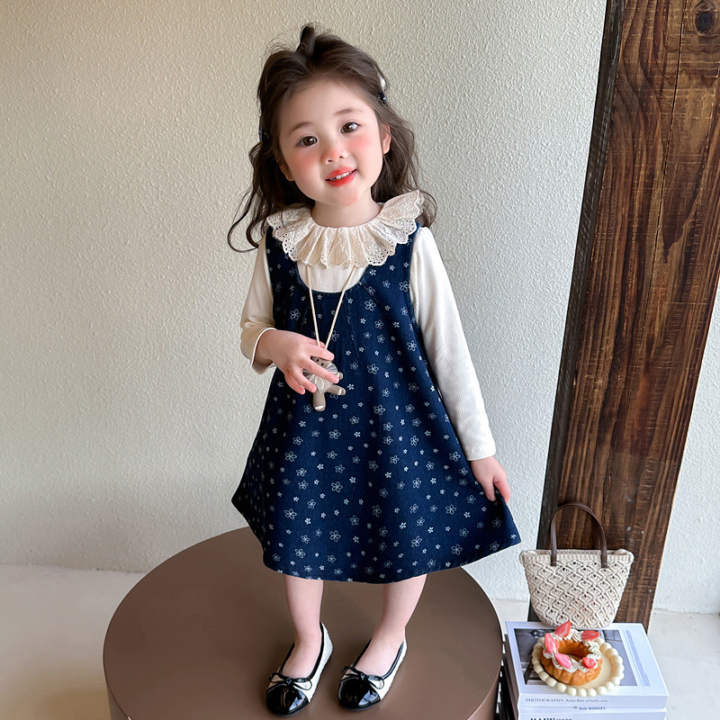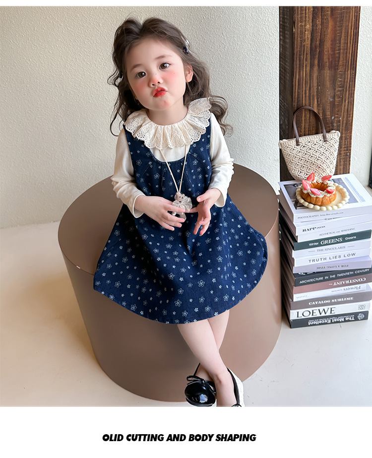 소녀 플로라 데님 스커트 투피스 세트 2025 봄과 가을 새로운 패션 소녀의 캐주얼 투피스 세트 중소 규모 어린이스토어 가기