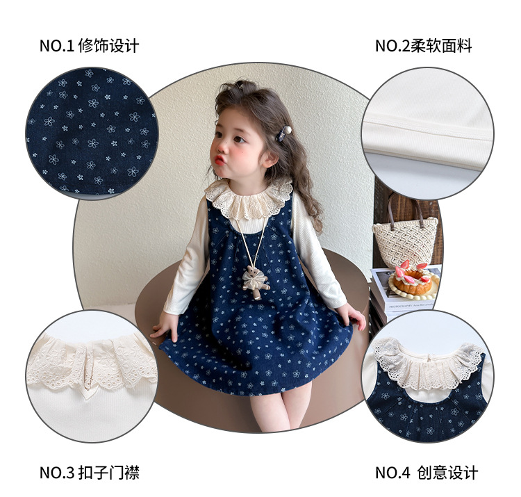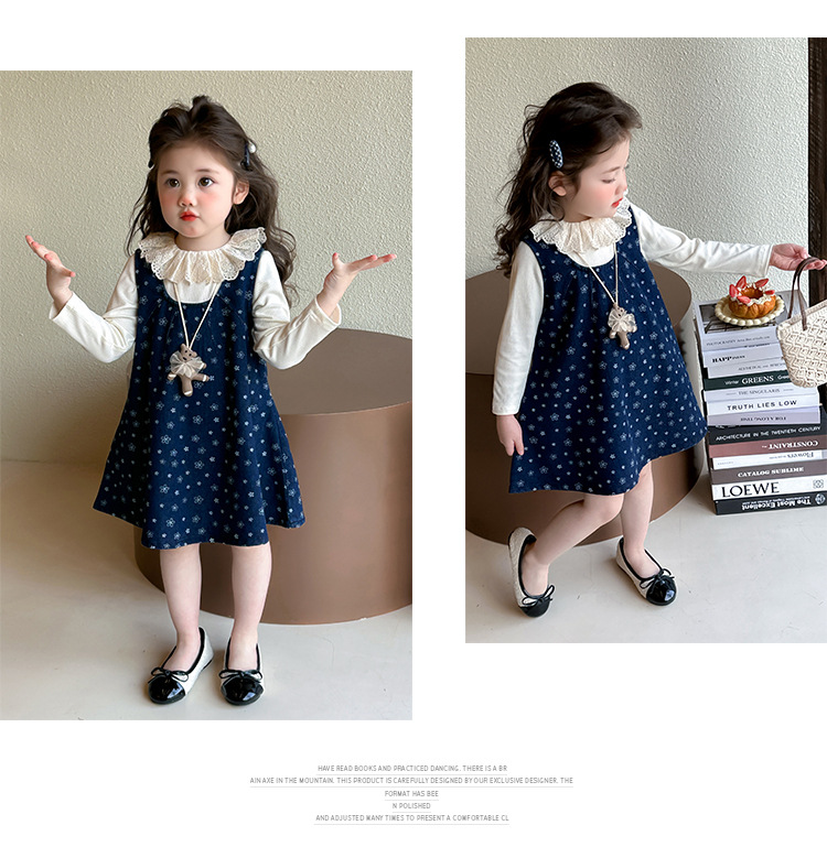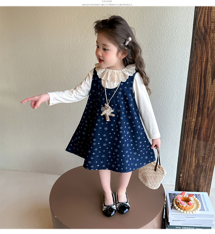 소녀 플로라 데님 스커트 투피스 세트 2025 봄과 가을 새로운 패션 소녀의 캐주얼 투피스 세트 중소 규모 어린이