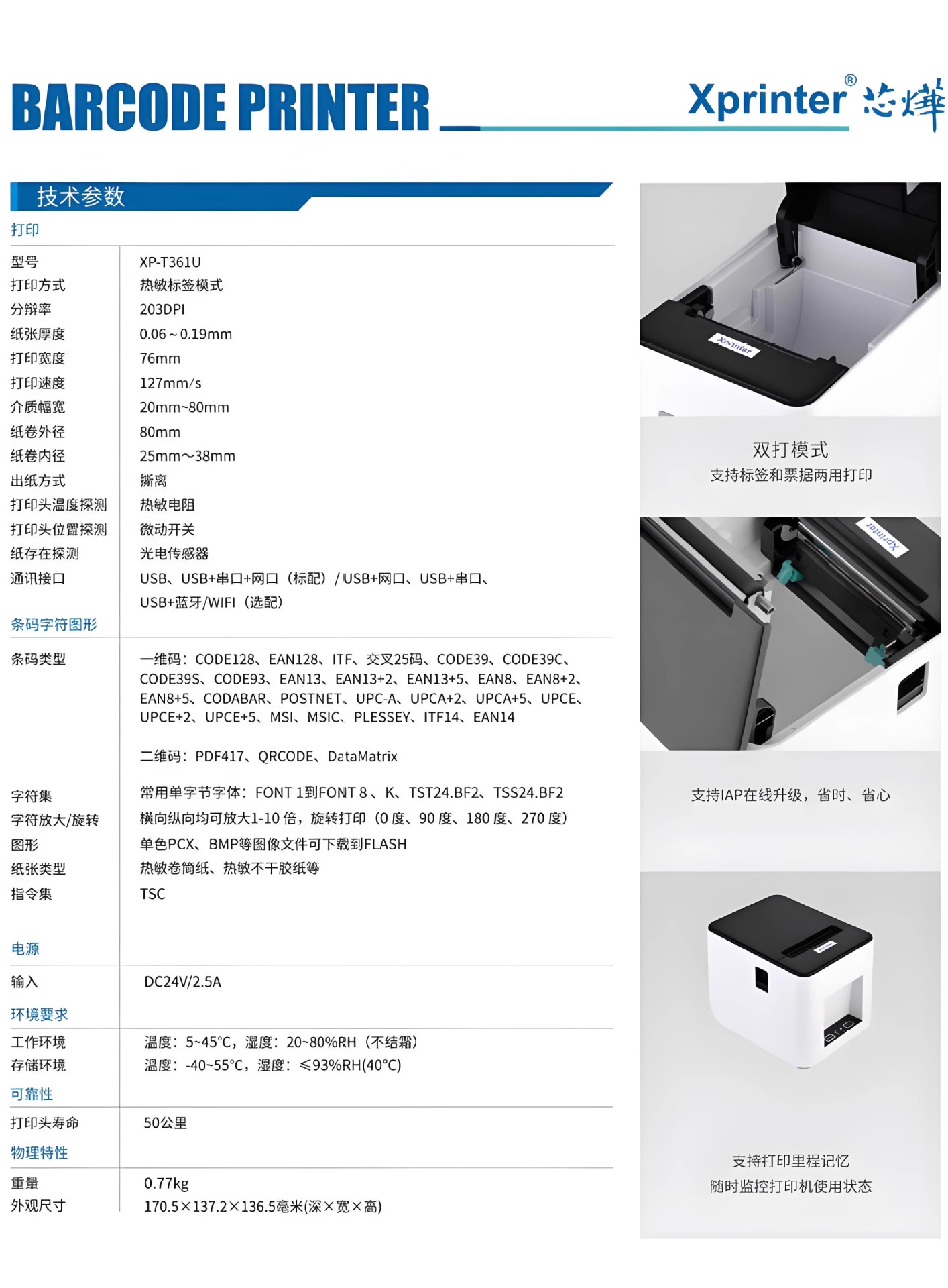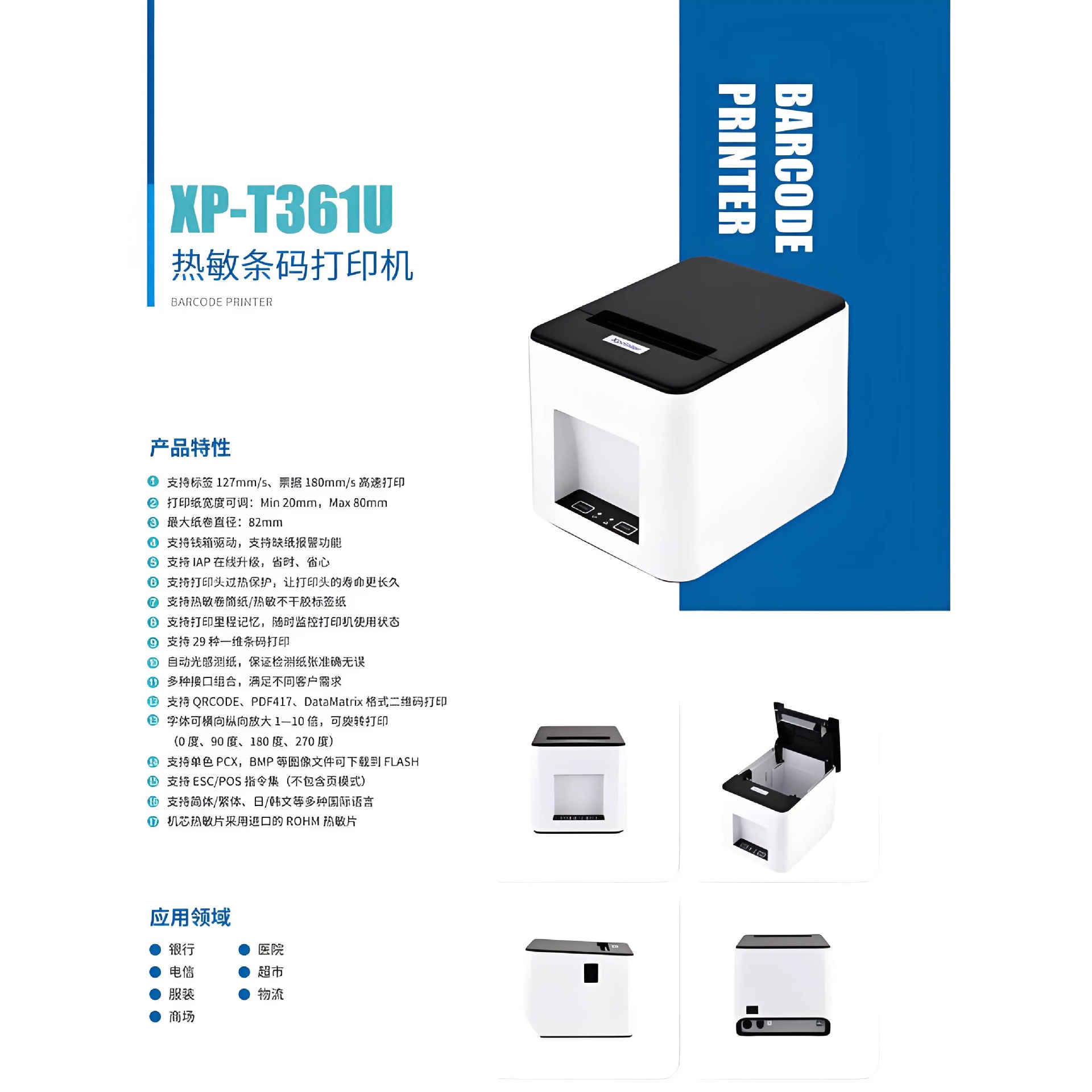 Xinye 라벨링 기계 T361 우유 차 카페 케이터링 슈퍼마켓 상품 열 스티커 바코드 프린터 80mm