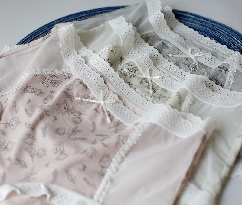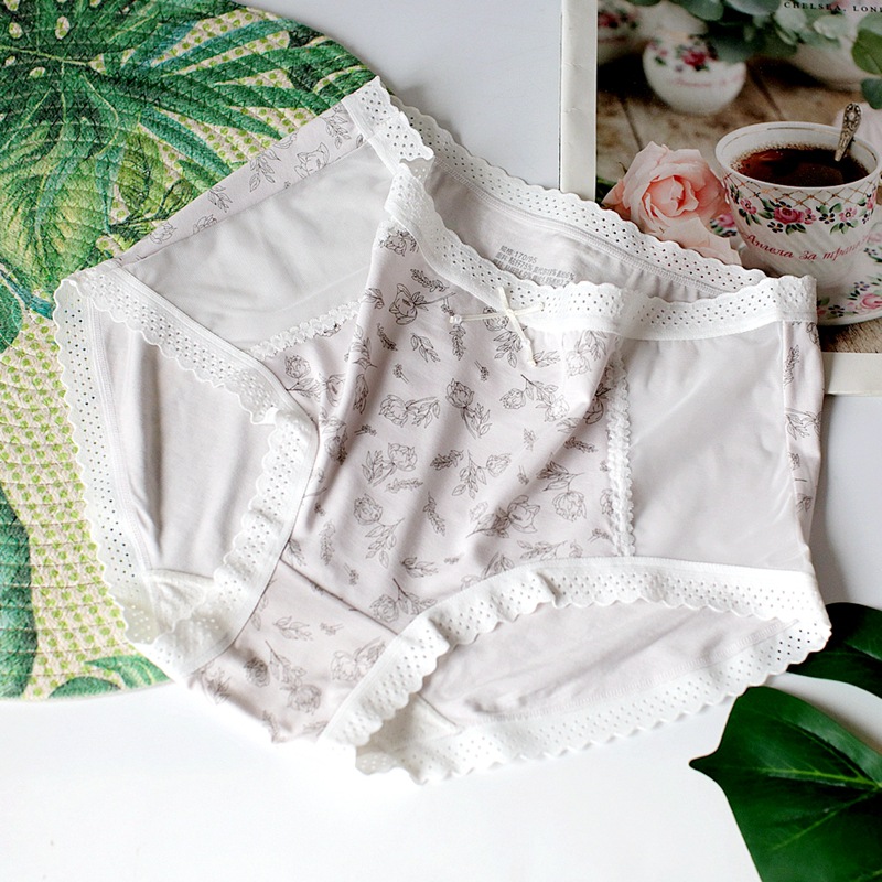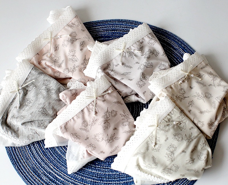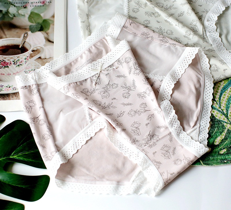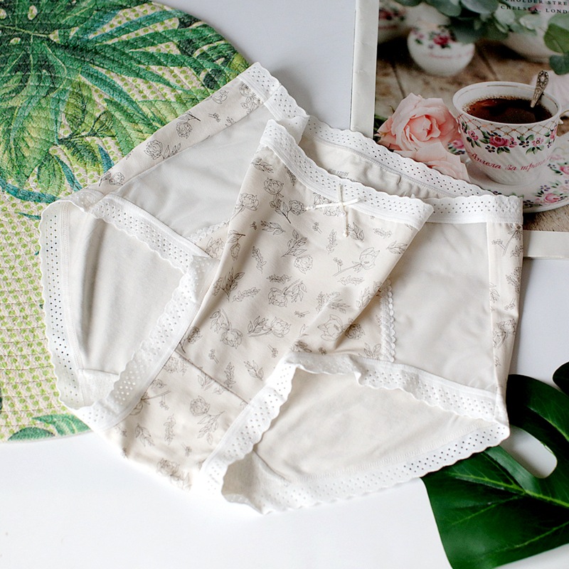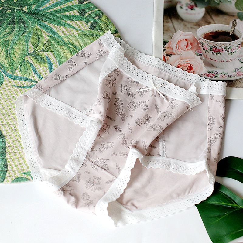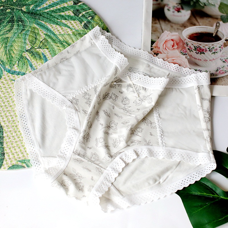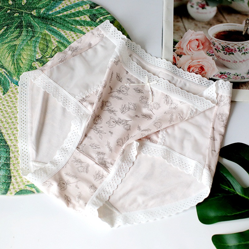 레이스 바느질 소녀의 속옷 달콤한 작은 꽃 중간 허리 여성의 브리프 통기성 편안한 인쇄 속옷스토어 가기