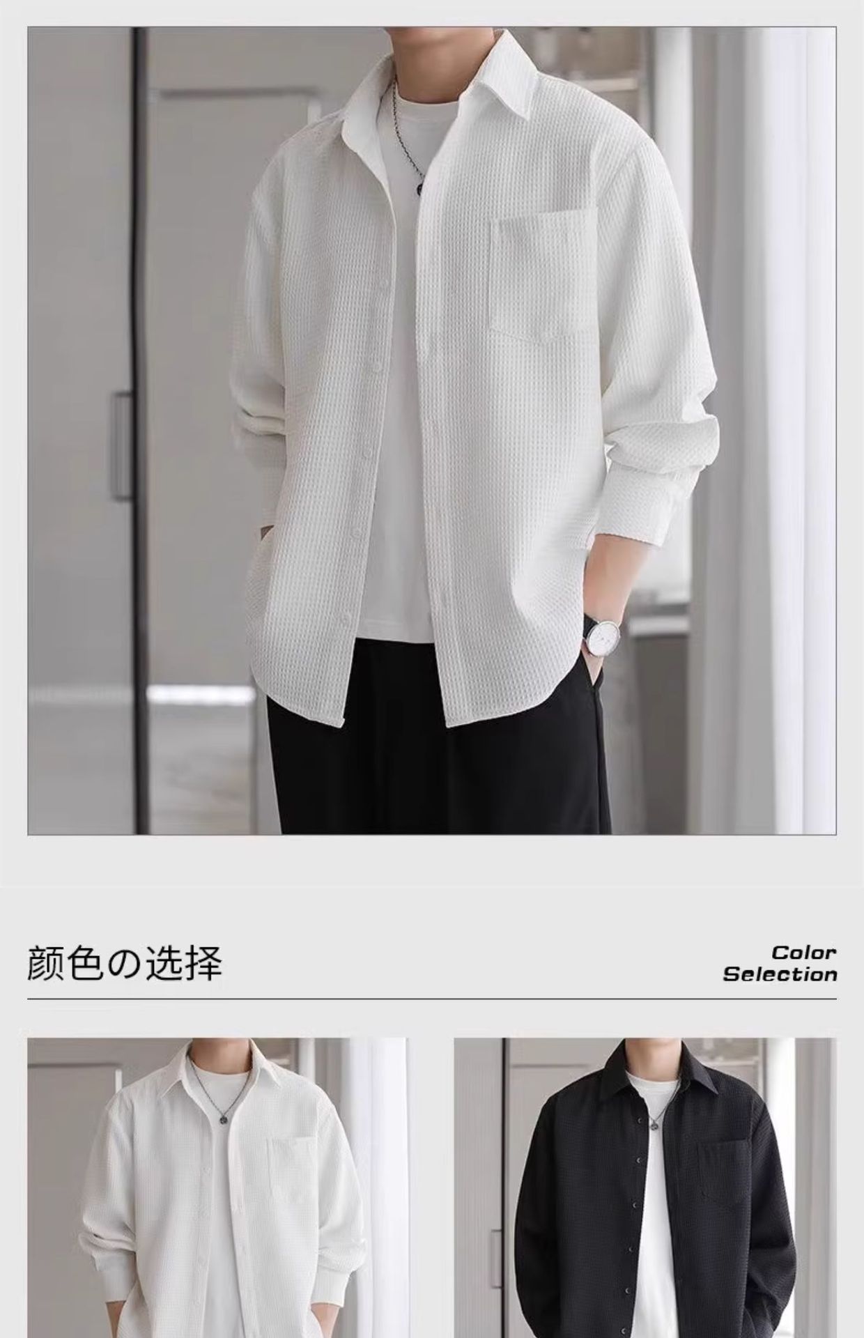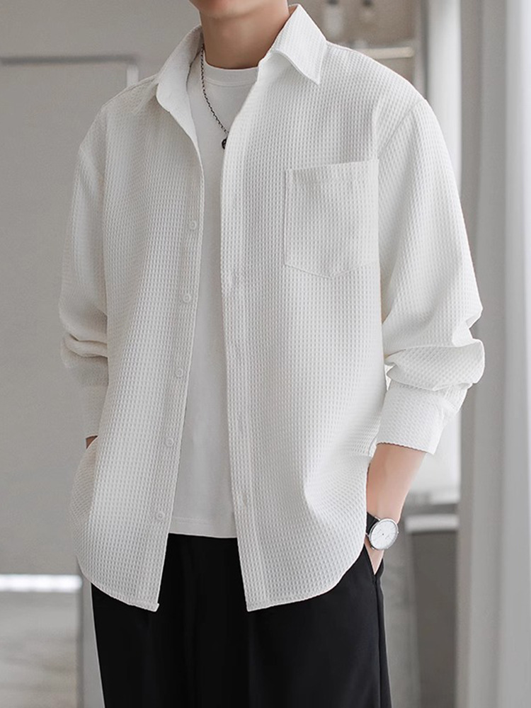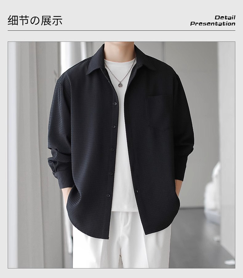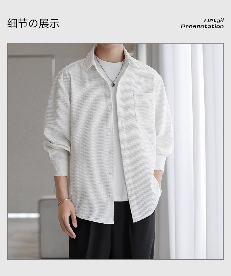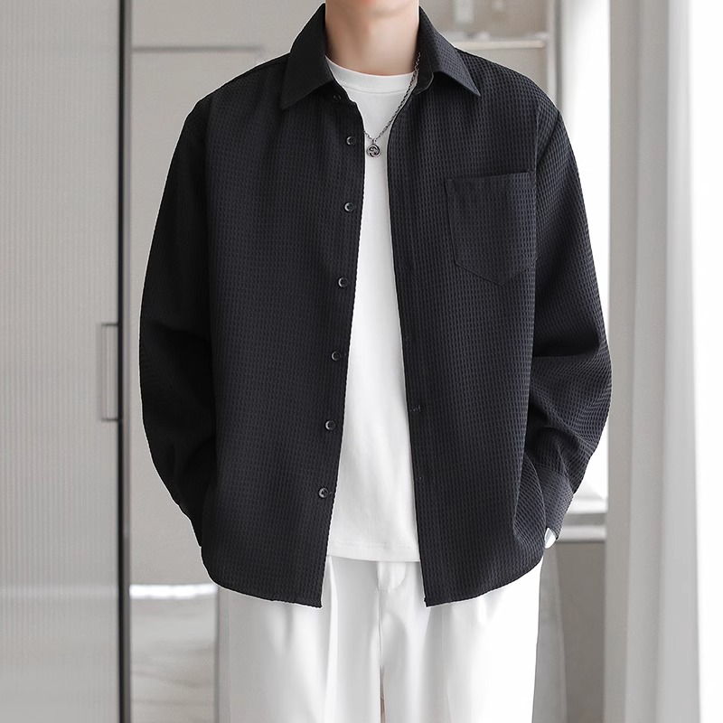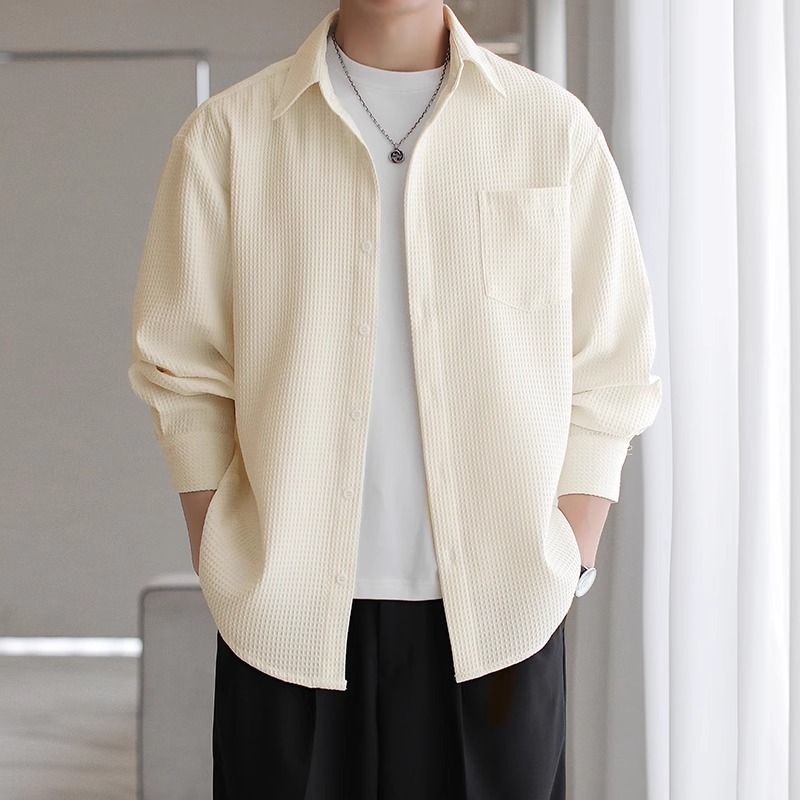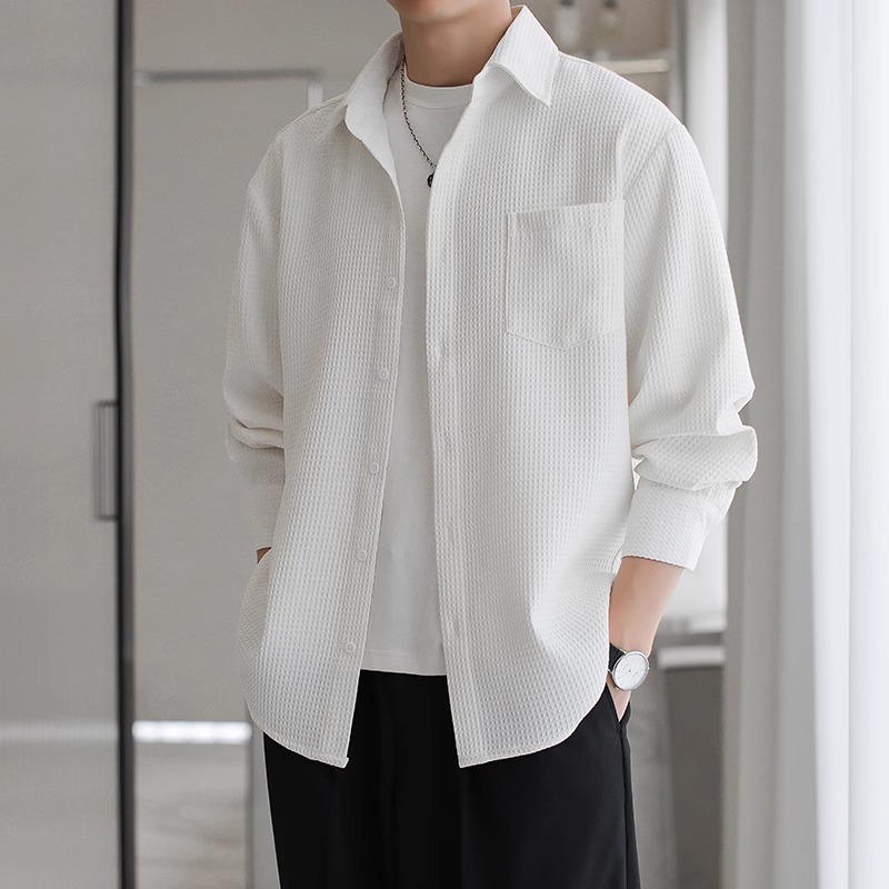 와플 셔츠 긴팔 남자 캐주얼 셔츠 남자 하이 엔드 느낌 Fuckish Handsome All-match 봄 여름 가을 셔츠 재킷 남자스토어 가기