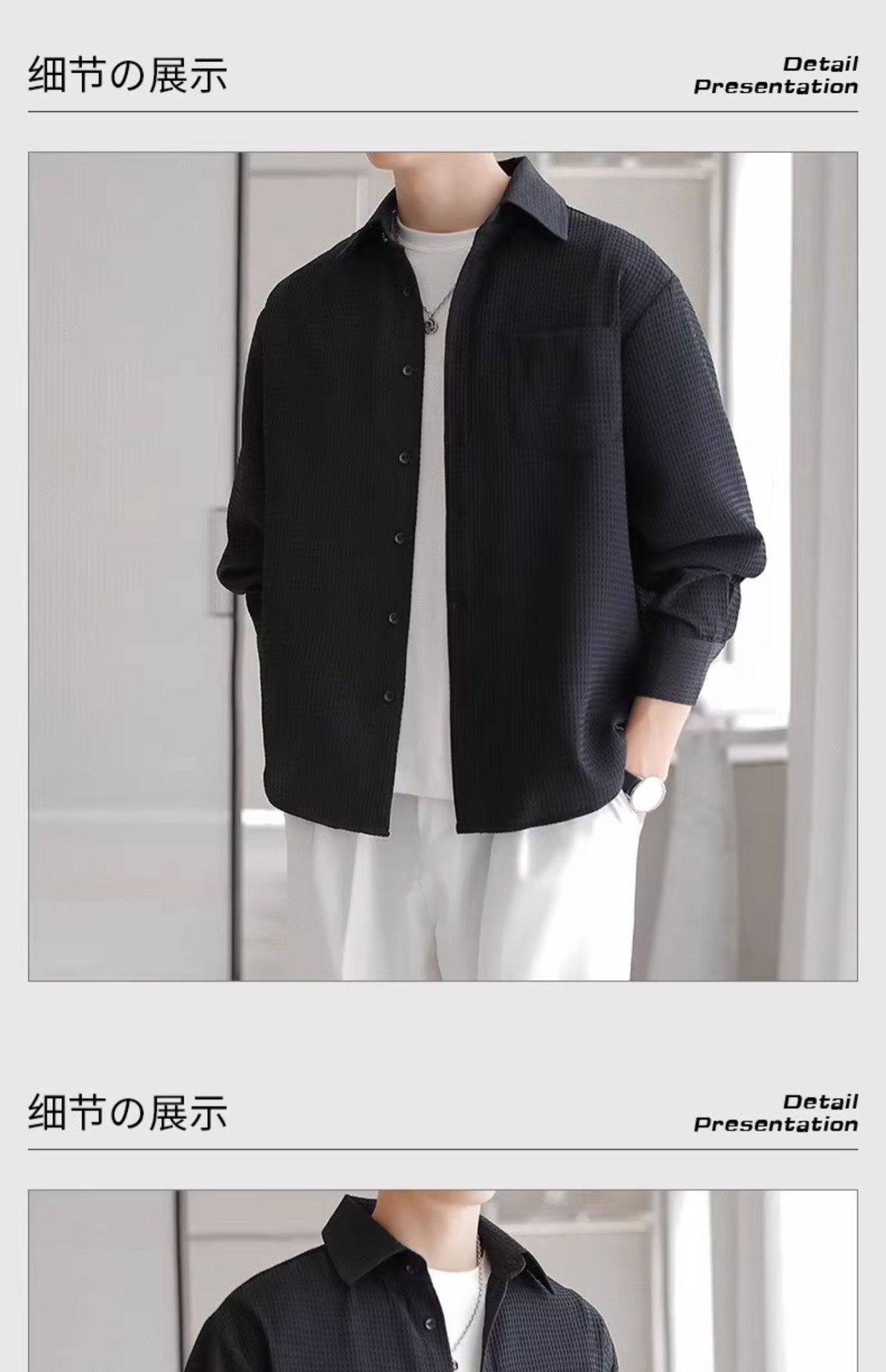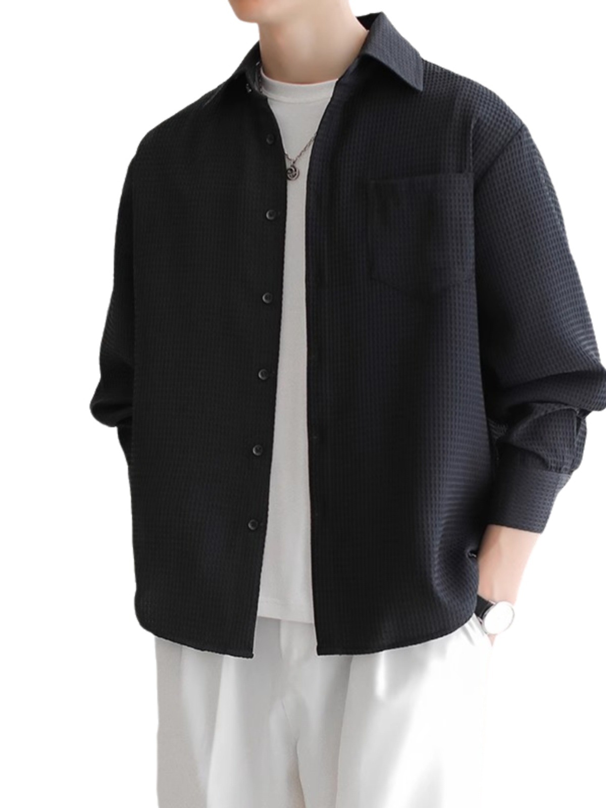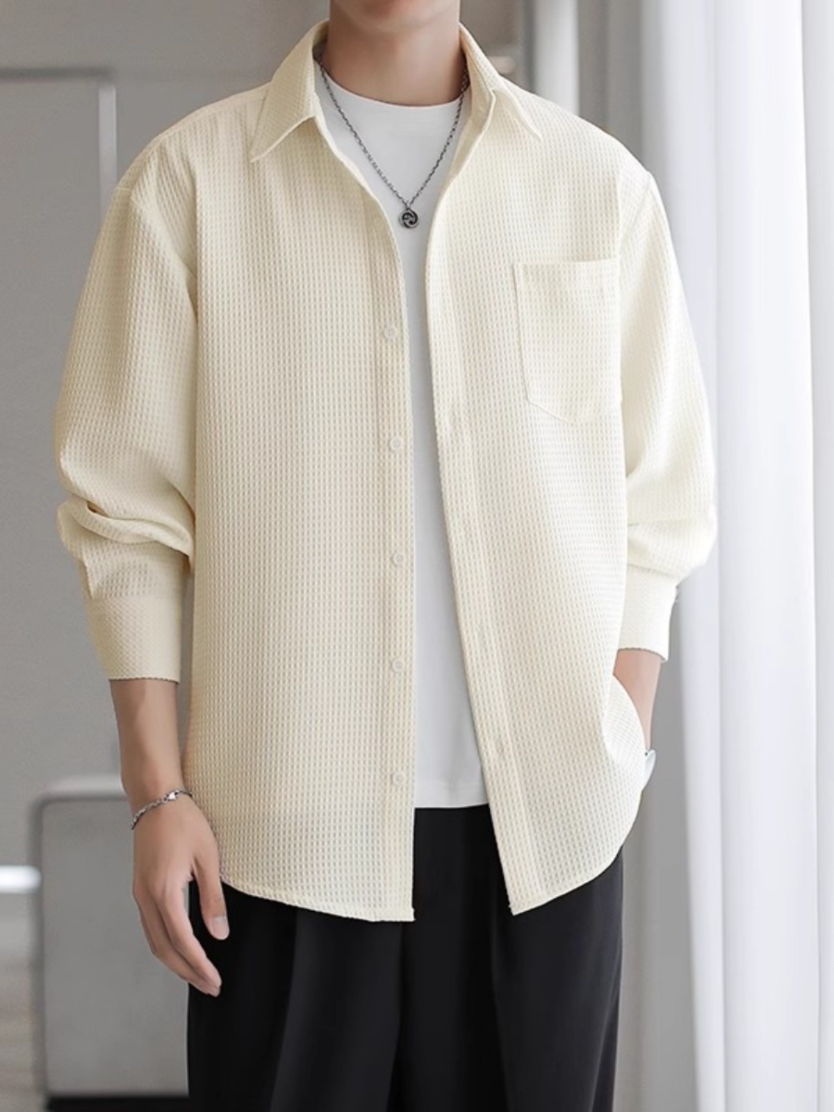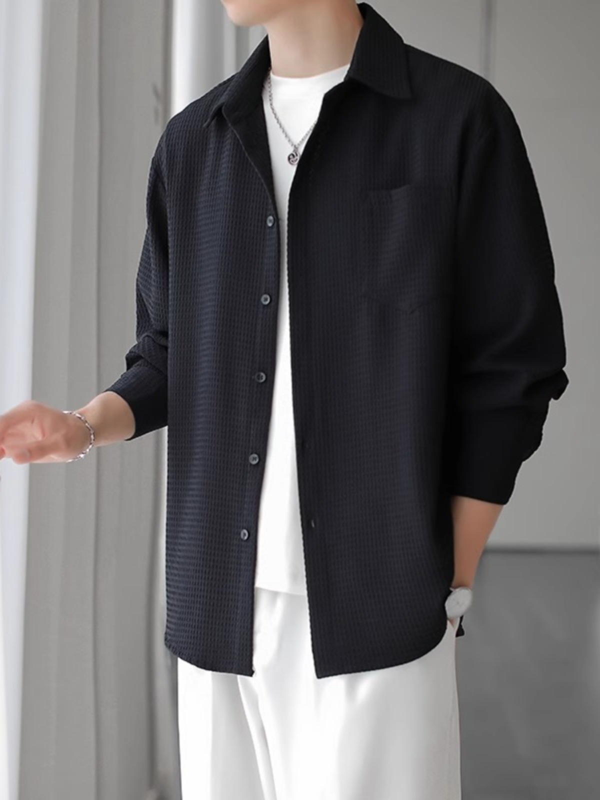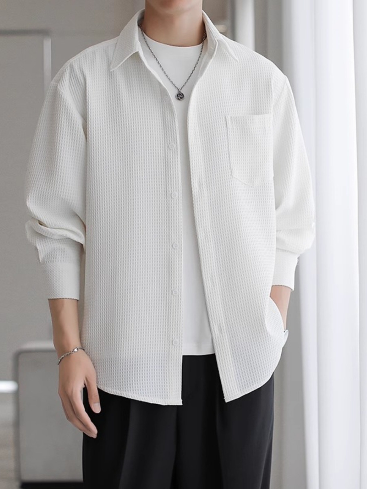 와플 셔츠 긴팔 남자 캐주얼 셔츠 남자 하이 엔드 느낌 Fuckish Handsome All-match 봄 여름 가을 셔츠 재킷 남자스토어 가기
