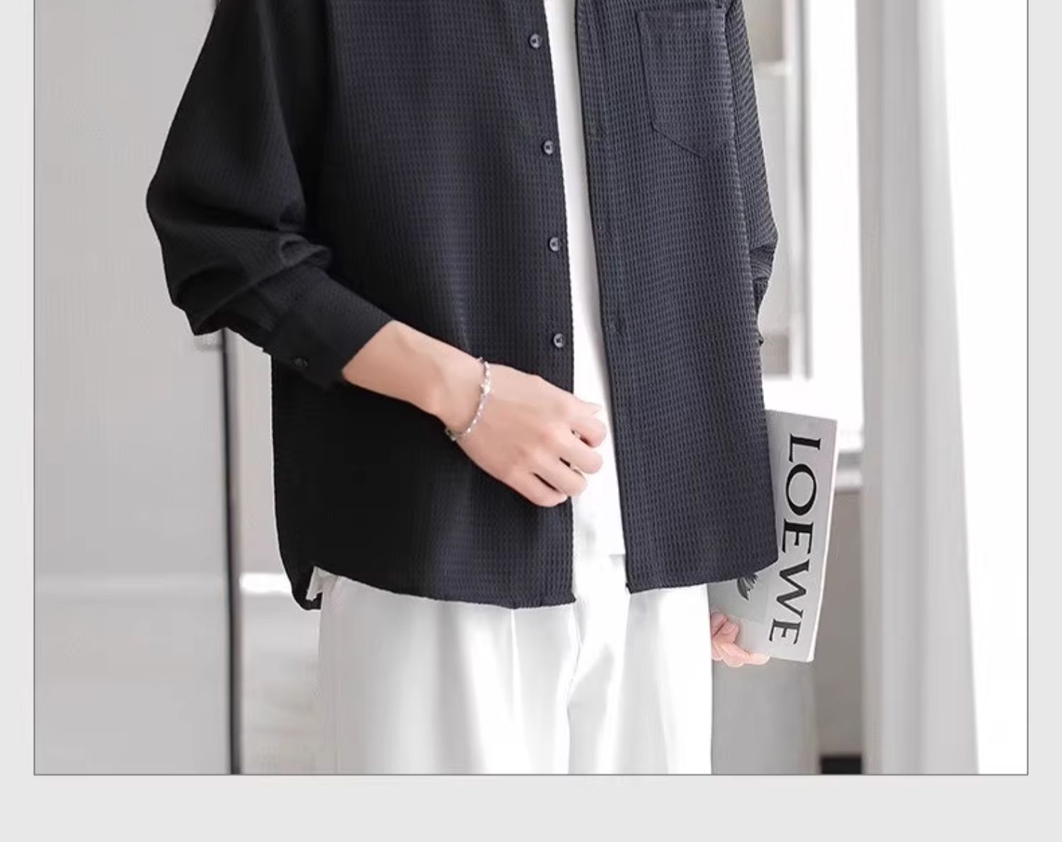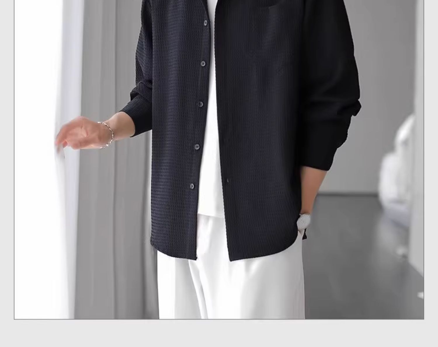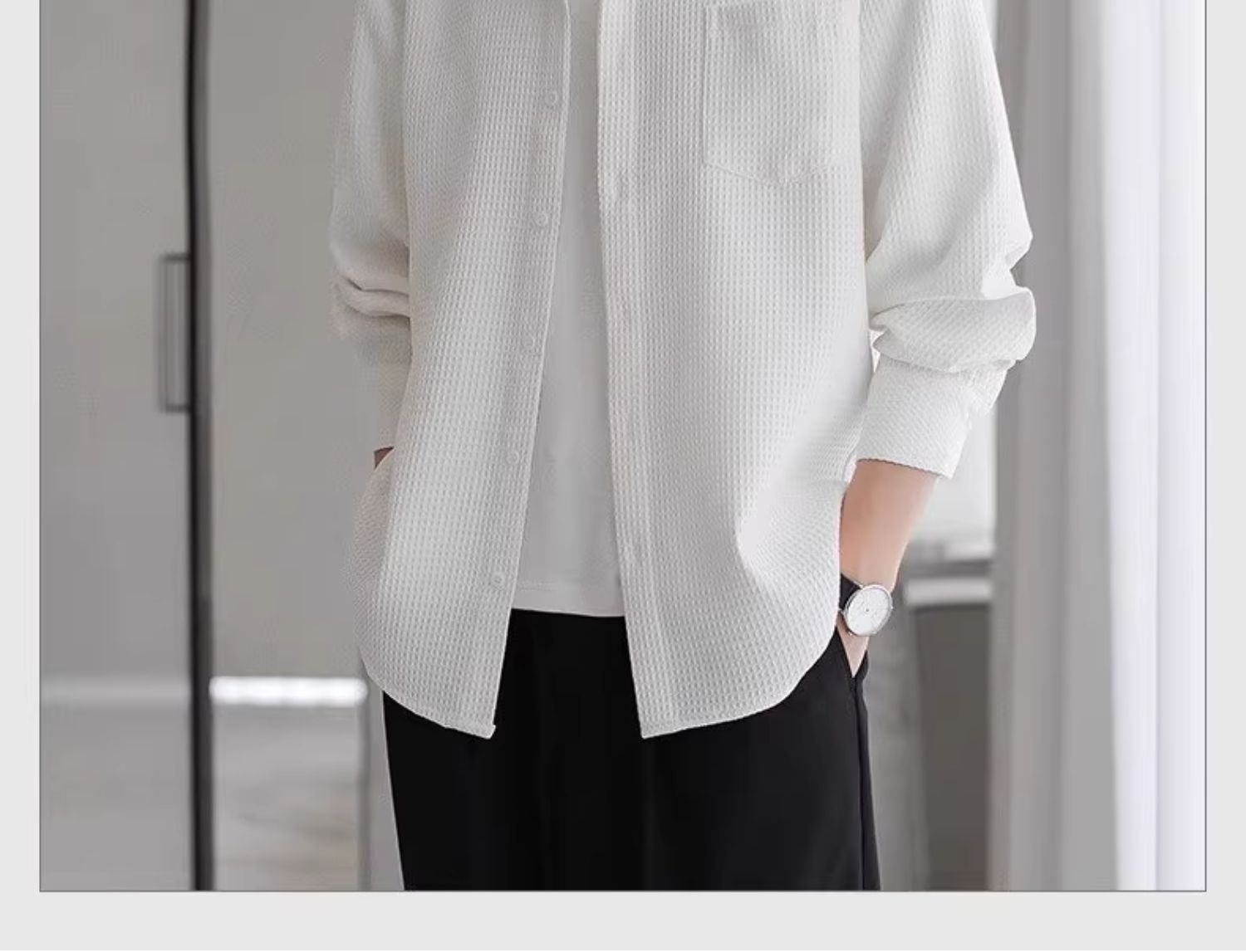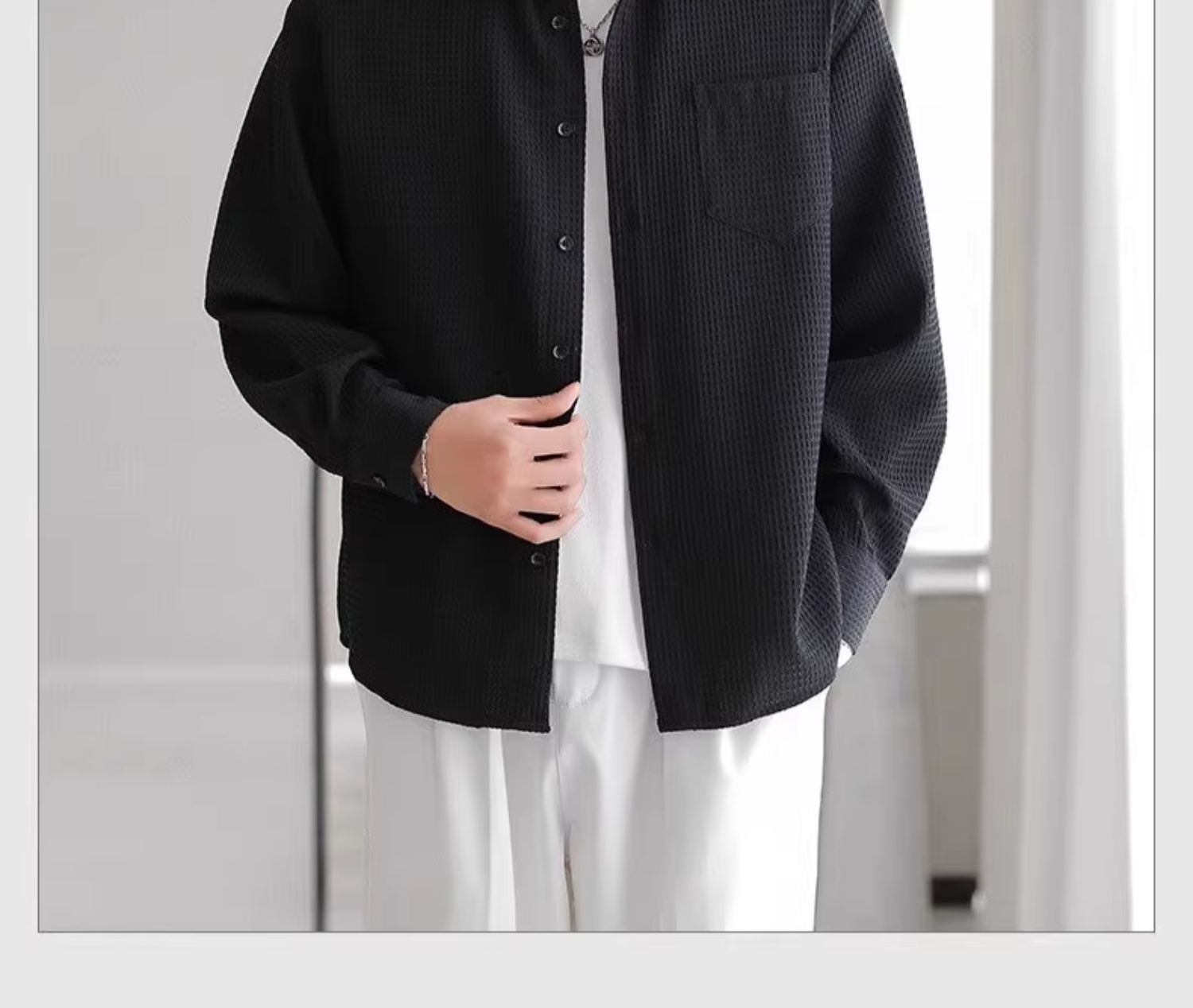 와플 셔츠 긴팔 남자 캐주얼 셔츠 남자 하이 엔드 느낌 Fuckish Handsome All-match 봄 여름 가을 셔츠 재킷 남자스토어 가기