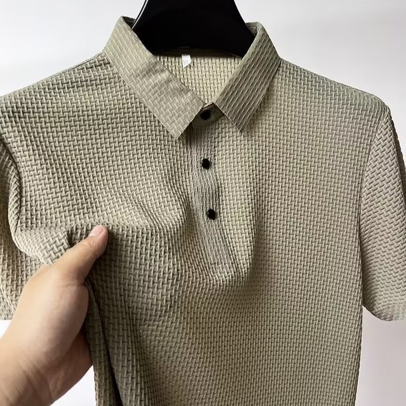 아이스 실크 티셔츠 남성 여름 비즈니스 하이 엔드 감각 단색 저렴한 탑 메쉬 짧은 소매 셔츠 국경 도매스토어 가기