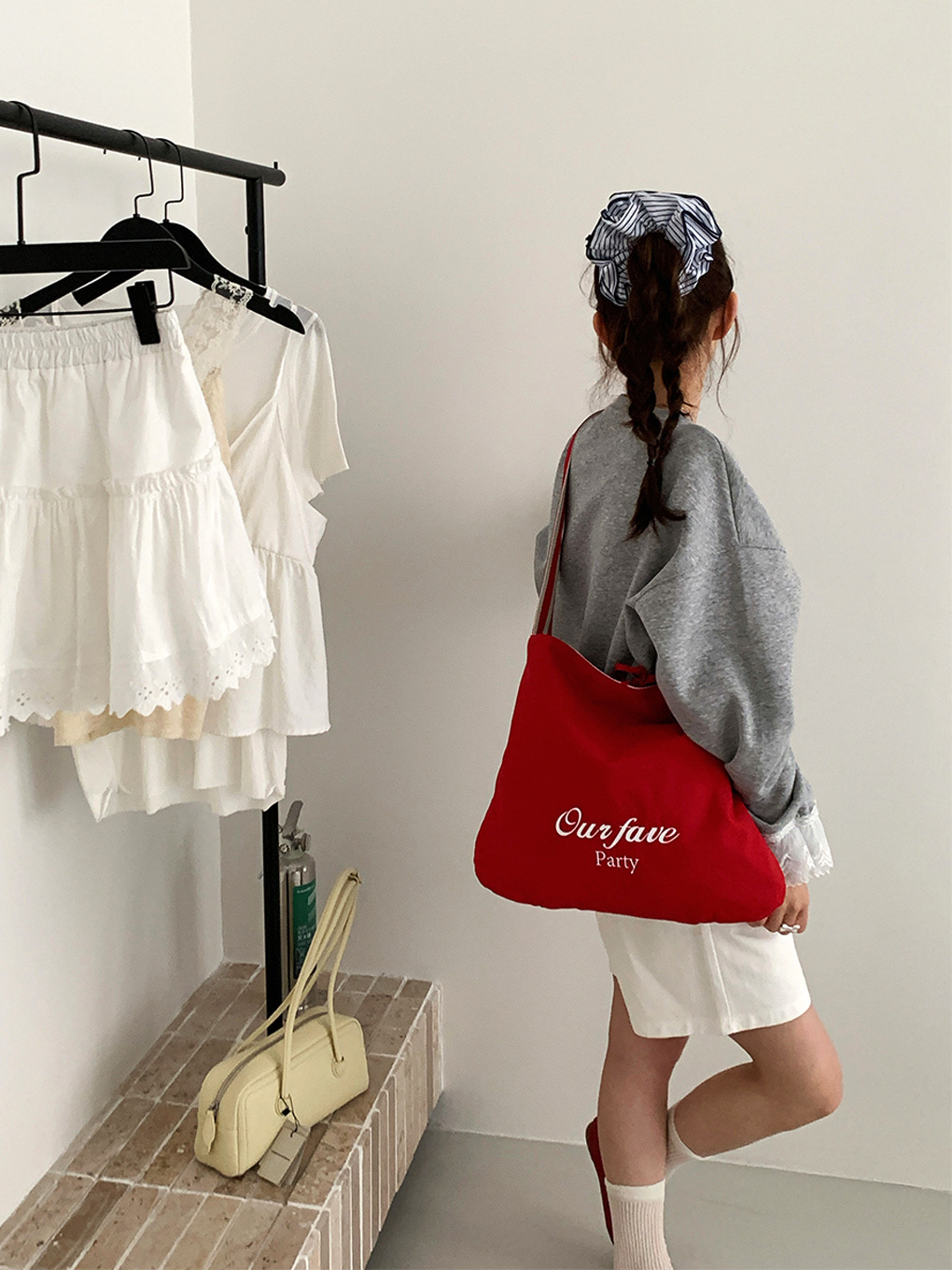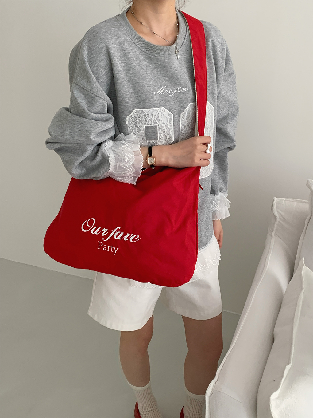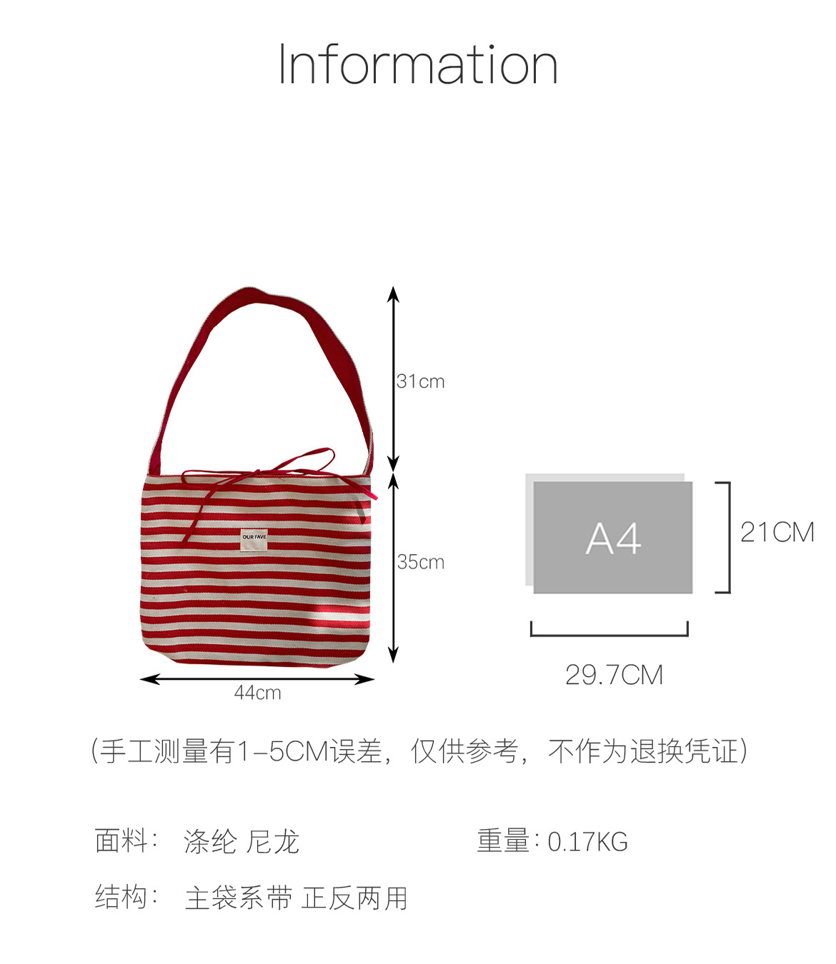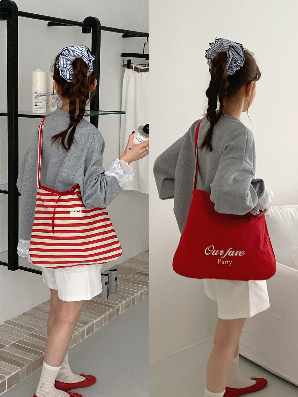 • 스트라이프 크로스바디 양면 가방 가로 스타일-레드