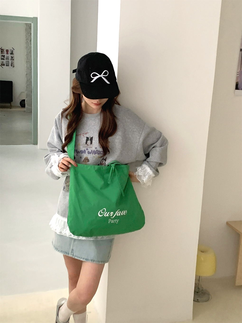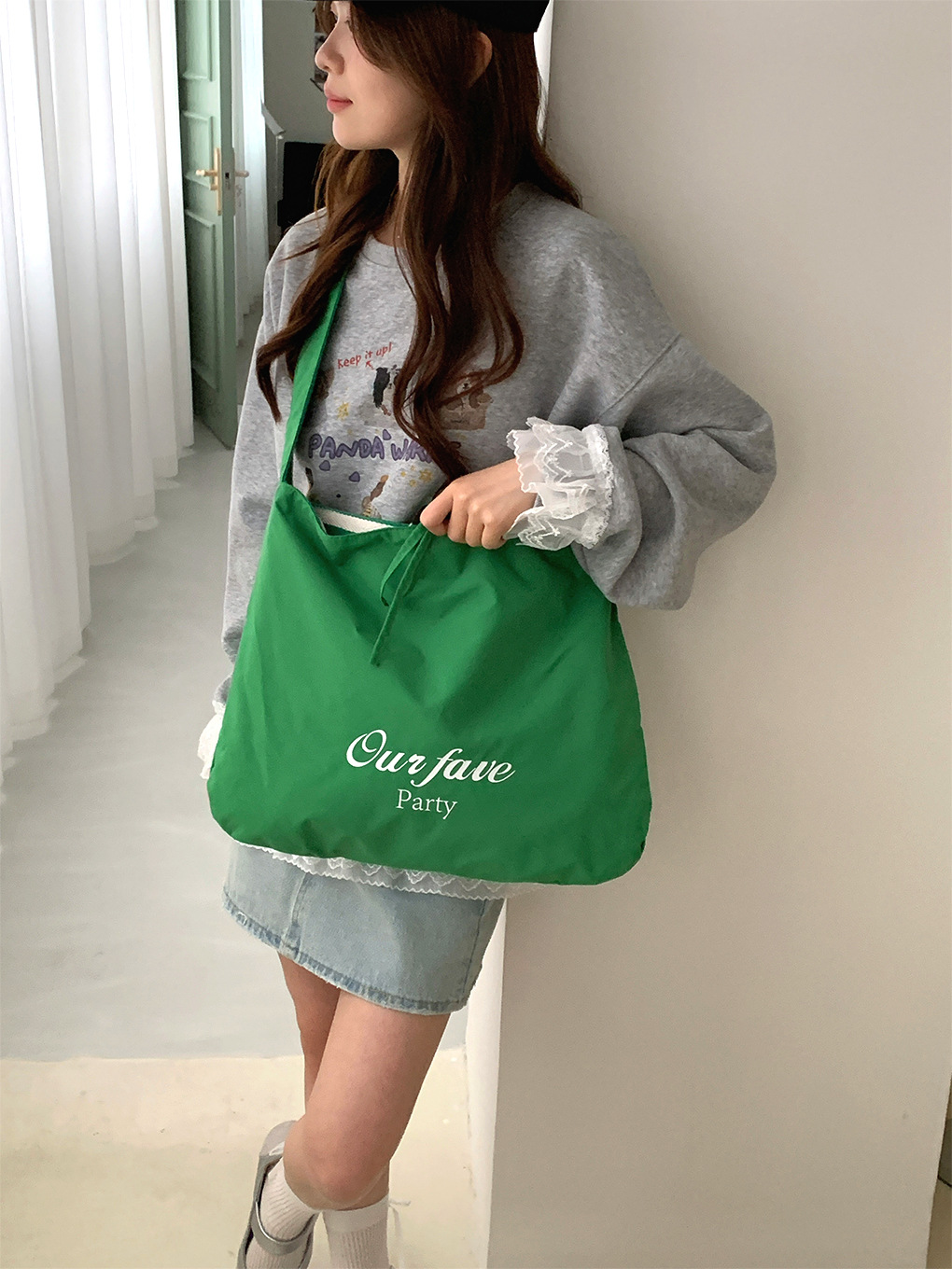 2025 봄과 여름 새로운 어깨 크로스 바디 백 신선한 녹색 스트라이프 듀얼 사용 더블 빵 대용량 캔버스 가방스토어 가기