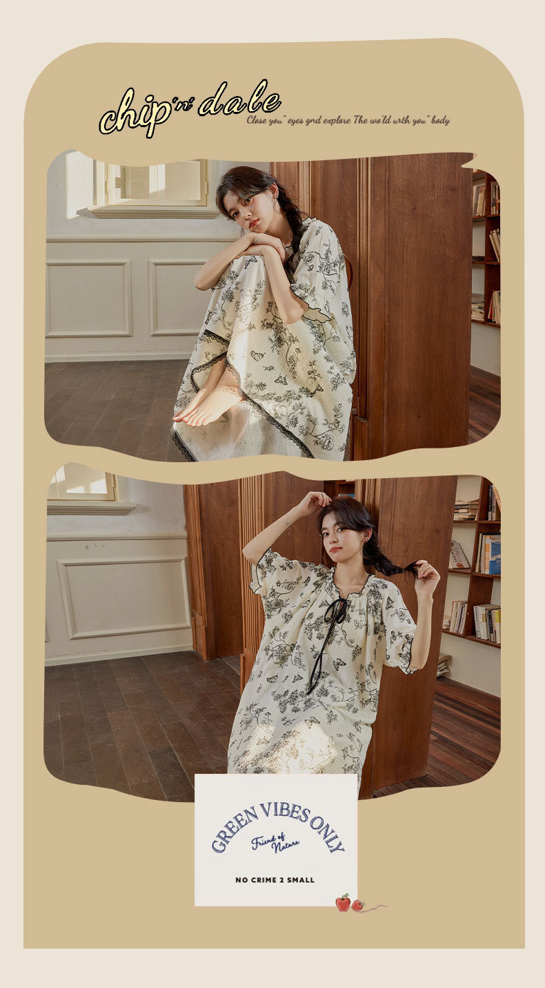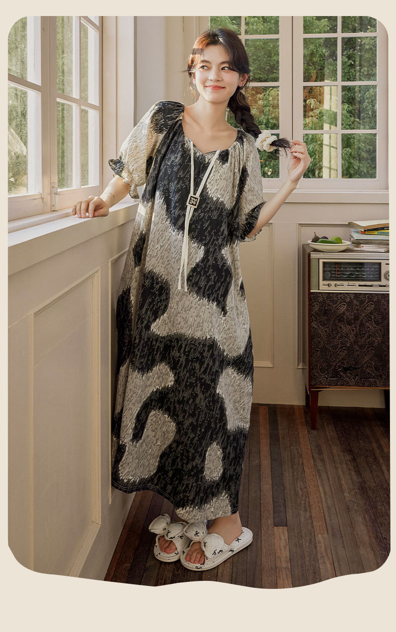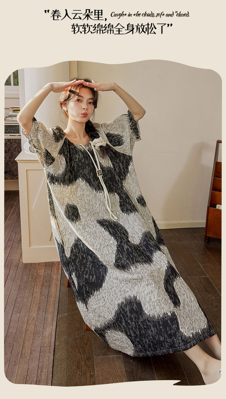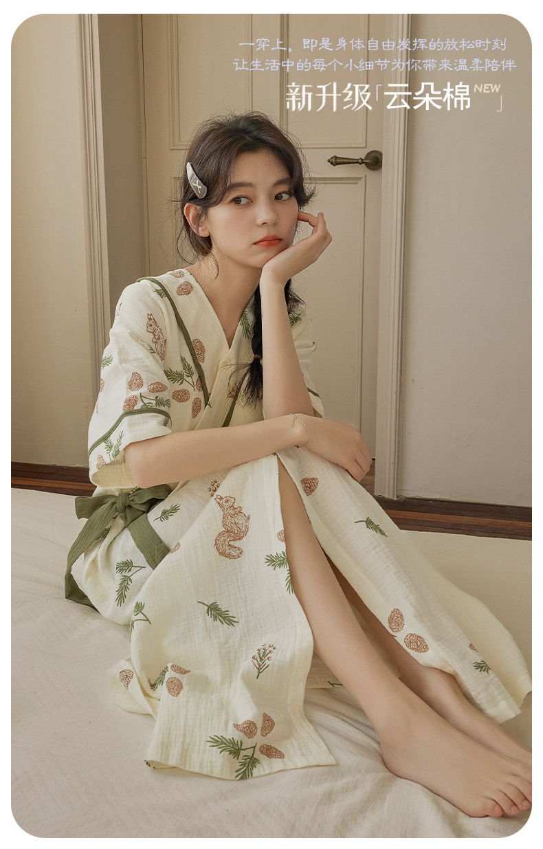 가슴 패드가 있는 여성용 여름 얇은 기모노 스타일 잠옷, 달콤한 반팔 루즈핏 롱 원피스, 외출복으로도 착용 가능, 무인쇄스토어 가기